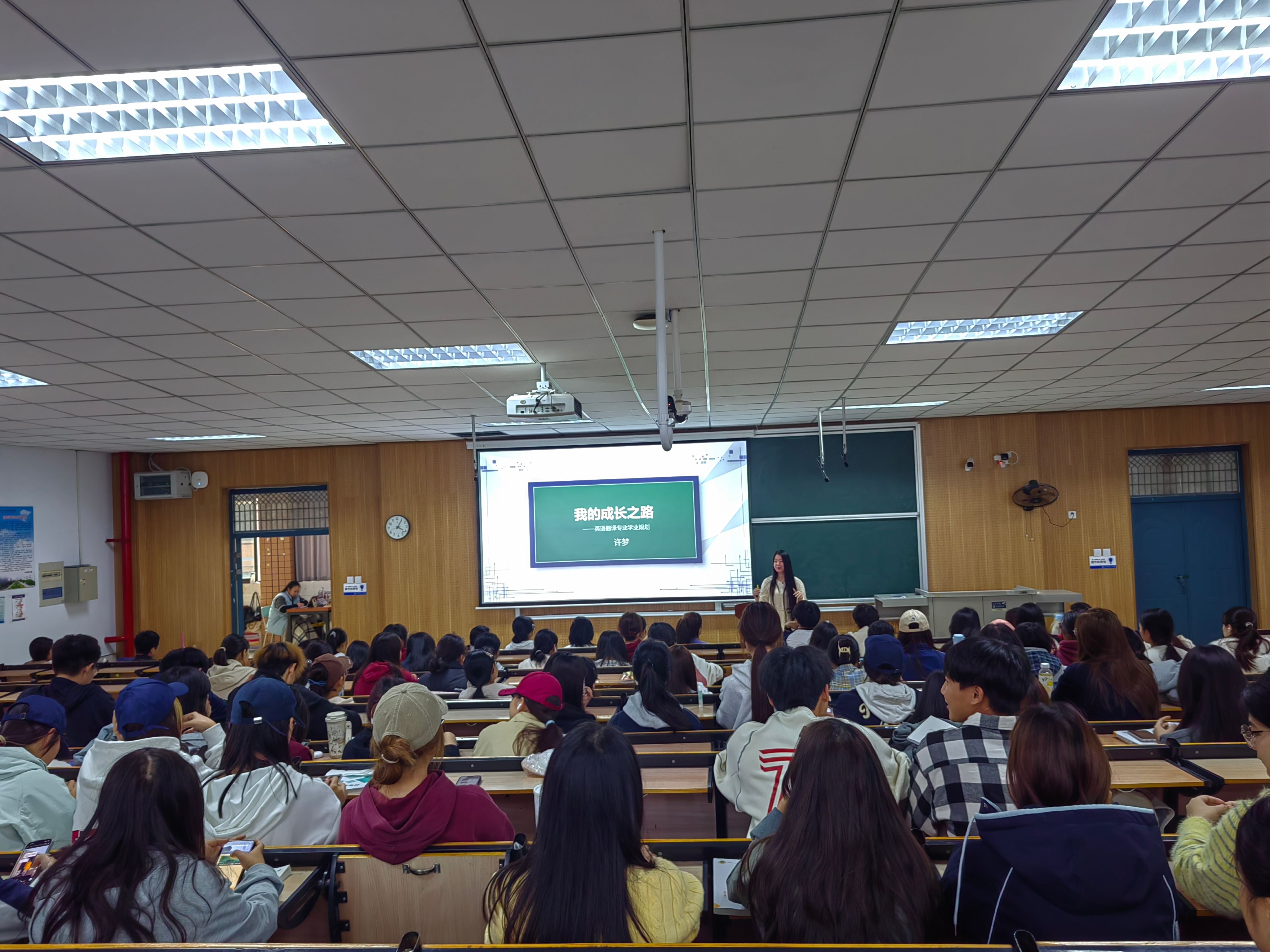 报告会现场互动环节为进一步凝聚校友力量,深化母校与校友情感联结,发挥优秀校友示范引领作用,助力学生成长成才与学校高质量发展,11月5日下午,由校友工作办公室、党委宣传部、学生处主办,外国语学院承办的第十三期校友创新大讲堂在和谐校区1号楼326教室举行。此次讲座邀请外国语学院翻译专业2018届优秀校友、新西兰惠灵顿维多利亚大学博士在读生许梦作题为《我的成长之路——英语翻译专业学业规划》的报告。外国语学院相关专业教师及大一全体学生参加。许梦与同学们分享了其大学期间的英语专业知识学习...