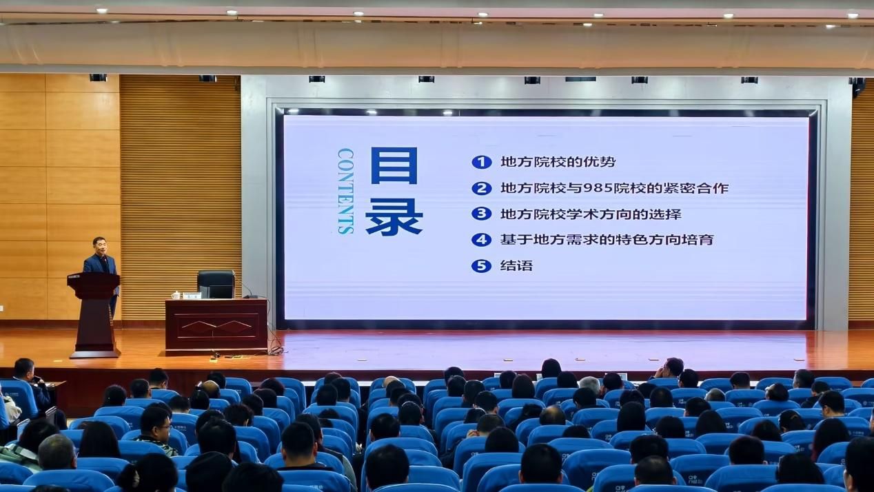 10月29日上午,中国工程院院士、哈尔滨工业大学马军教授应邀来校开展交流。交流期间,为学校师生作了主题为《新质生产力发展背景下地方院校如何开展有组织科研思考》学术报告。报告会由副校长毛艳丽主持。学校科研处、研究生处等职能部门负责人,各学院院长、副院长、学科骨干教师及研究生代表参加了此次学术讲座。在报告中,马军结合自身深厚的科研积淀与丰富的管理实践,从地方院校的独特优势、特色发展路径、科研合作模式、从工程实践中凝练科学问题、为学生提供全过程实践机会、强化多学科交叉融合、以及紧密跟...