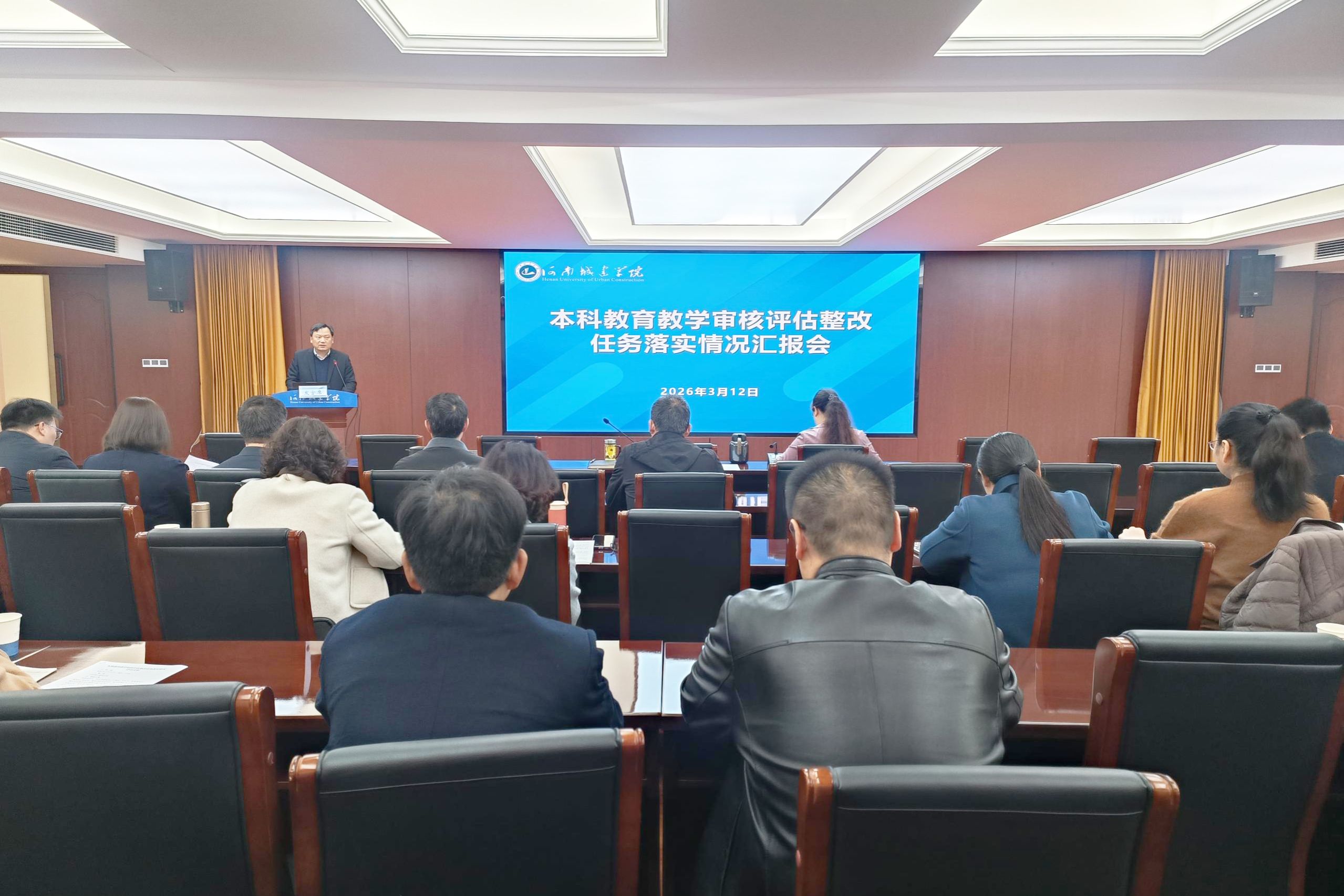 汇报会现场为继续推进本科教育教学审核评估整改工作,巩固整改成效,持续提升本科教育教学质量,3月12日下午,我校在行政楼五楼会议室召开本科教育教学审核评估整改任务落实情况汇报会。校长陈桂香、副校长孙玉周出席会议,教务处、发展规划处等牵头部门负责人,党委宣传部、科学技术处等参与单位负责人及各学院院长和相关工作人员参加会议。会议由孙玉周主持。校长陈桂香出席并讲话各牵头单位负责人汇报整改落实情况会上,各整改牵头部门负责人依次汇报本科教育教学审核评估整改任务落实情况,紧扣评估反馈问题,从...