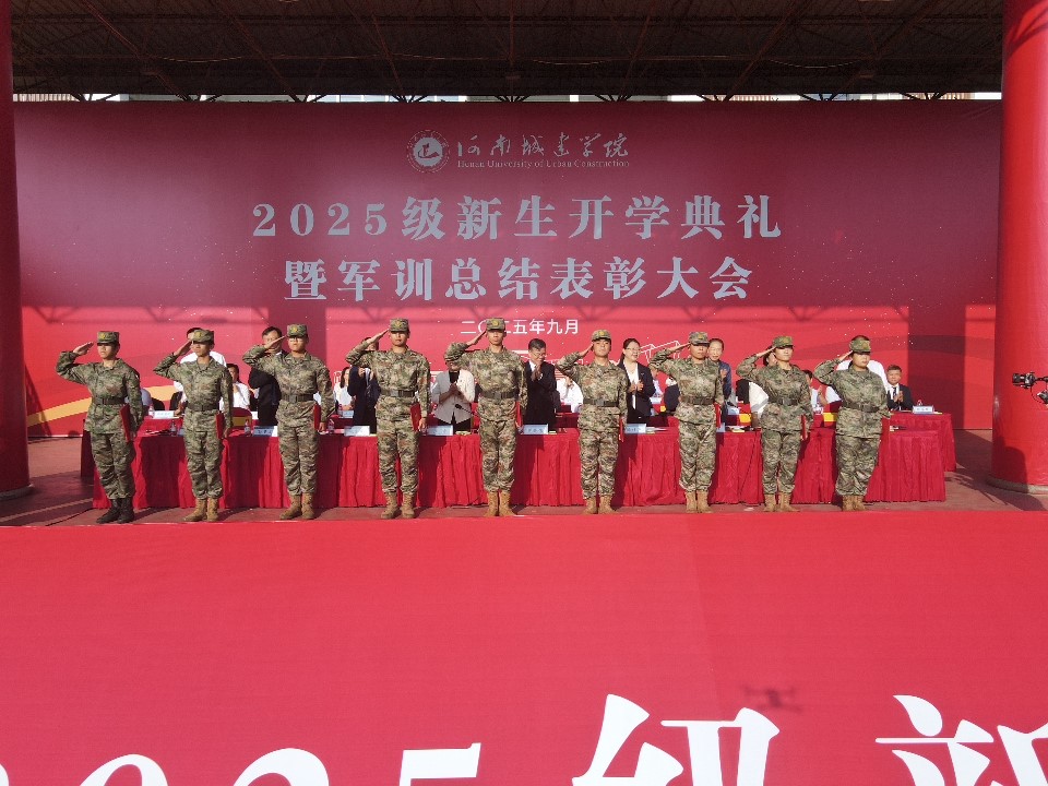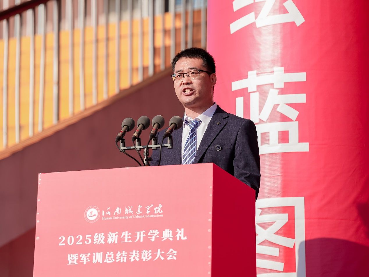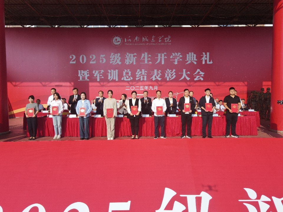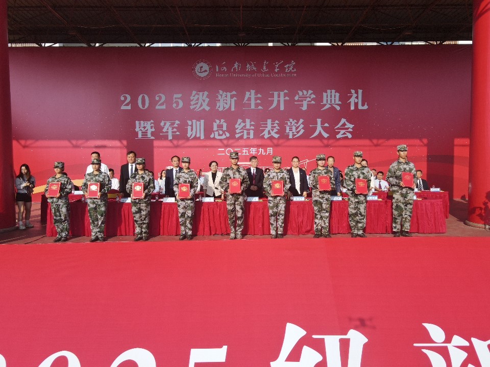 校党委副书记、工会主席王靖宣布《中共河南城建学院委员会关于表彰2025级新生军训工作先进集体和先进个人的决定》。