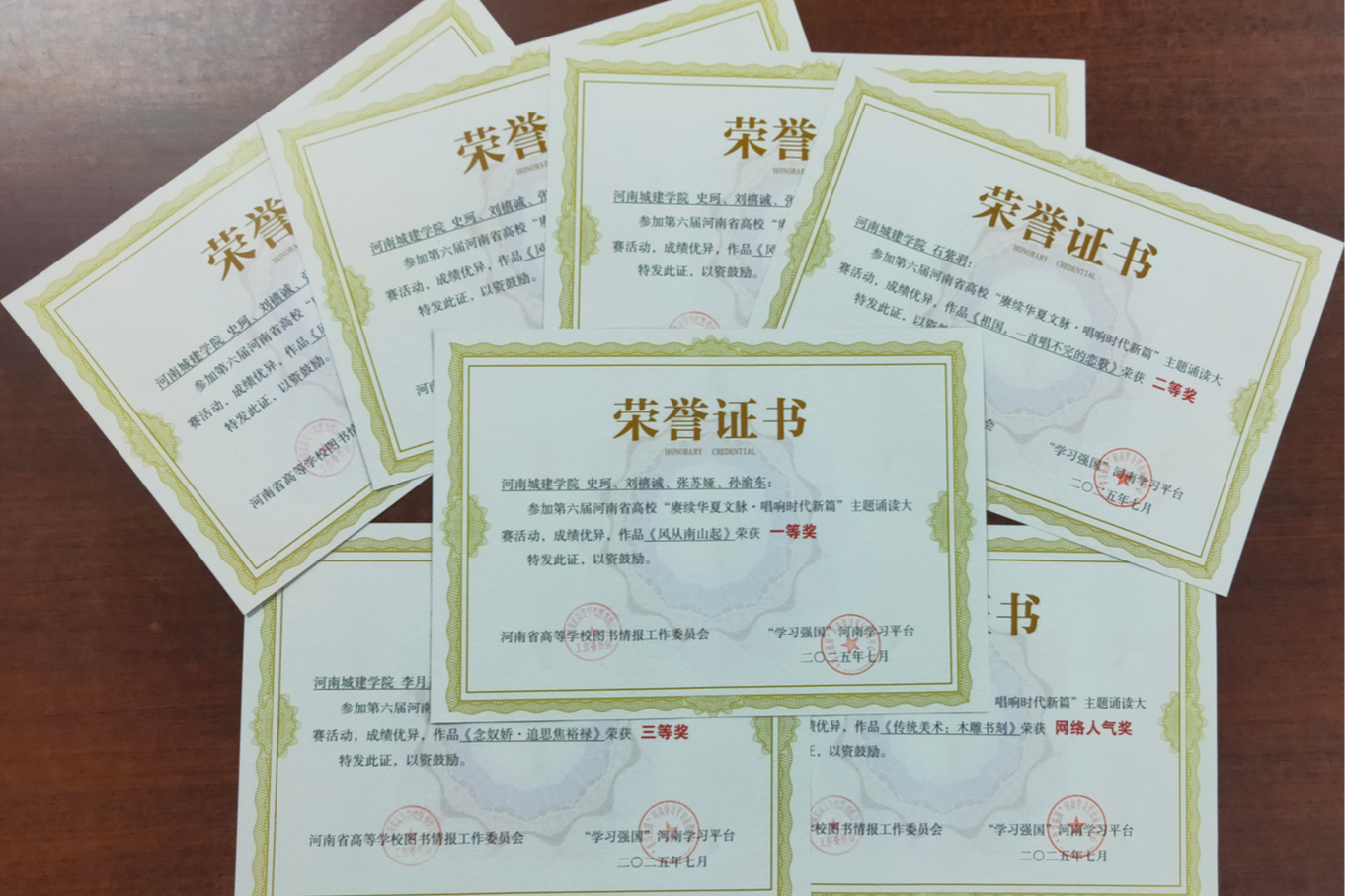近日,由河南省教育厅高等教育处、河南省高校图书情报工作委员会、“学习强国”河南学习平台主办的第六届河南省高校“赓续华夏文脉·唱响时代新篇”主题诵读大赛圆满结束。来自河南省内百余所高校师生踊跃参与,以青春之声讲好中国故事、传播好中国声音。我校学子凭借扎实的语言功底、饱满的情感表达以及深刻的文化理解,在众多参赛队伍中崭露头角、脱颖而出,其诵读作品在赛场上大放异彩,荣获本科学生组一等奖1项、二等奖1项、三等奖1项,同时还摘得网络人气奖1项。