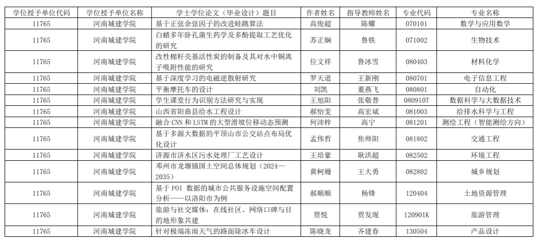 近日,河南省教育厅印发《关于公布2024年河南省优秀学位论文评选结果的通知》(教研〔2025〕210号),我校推荐的14篇本科毕业论文(设计)获评河南省优秀学士学位论文(设计),具体名单如下: