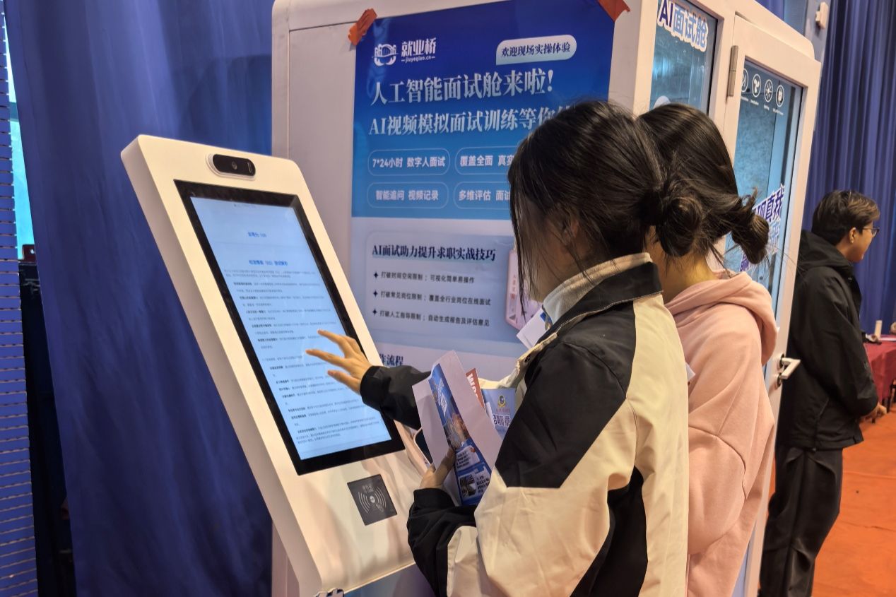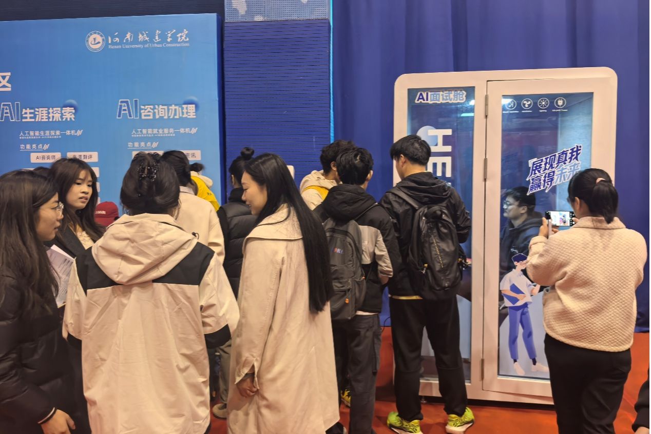 同时,双选会打造了“AI+多元服务”的智慧就业场景,现场设立的AI赋能就业体验区成为一大亮点,通过AI咨询办理、AI生涯探索、AI简历制作、AI证件照、AI面试舱五大服务专区,为毕业生提供全流程数字化指导。同时,我们还整合了简历指导、就业政策解读、法律维权、税务社保咨询、反诈宣传等线下服务。邀请专家在行政楼学术报告厅开展“考公考编专题讲座”,帮助学生明确备考和求职方向。
