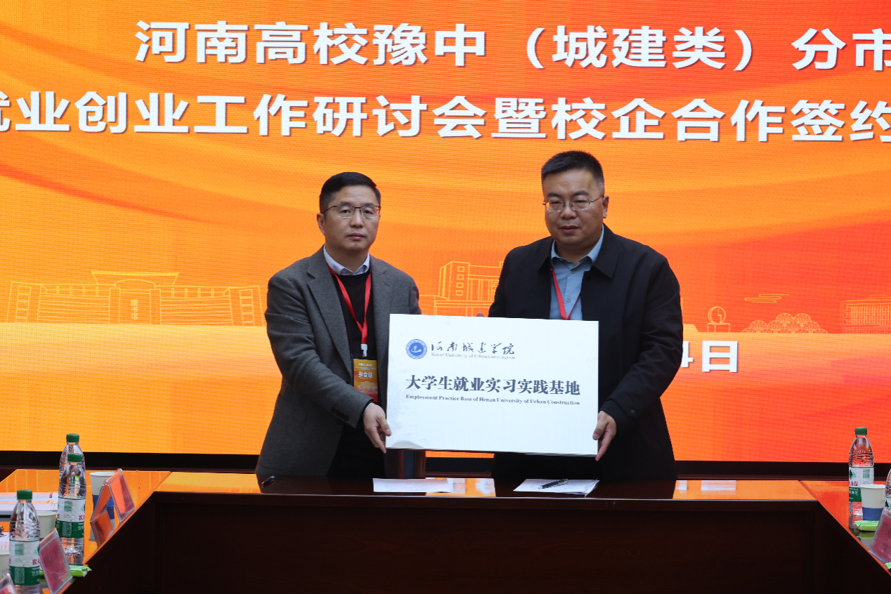 双选会当天,学校在行政楼5楼会议室举办了豫中分市场就业创业工作研讨会,来自豫中地区的16所兄弟院校就业创业负责人、企业代表、学院领导、招生就业处相关负责人参会,会上还进行了校企合作签约授牌仪式。