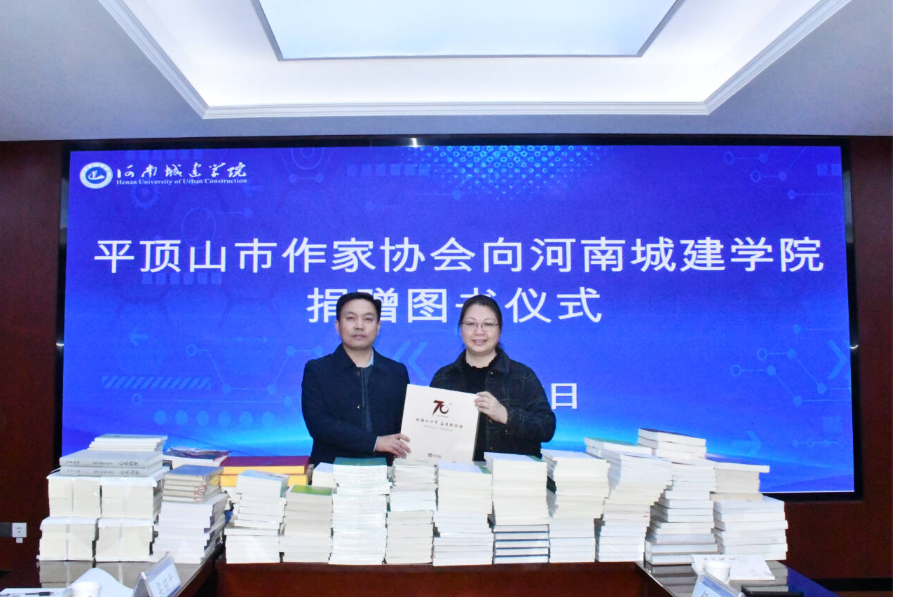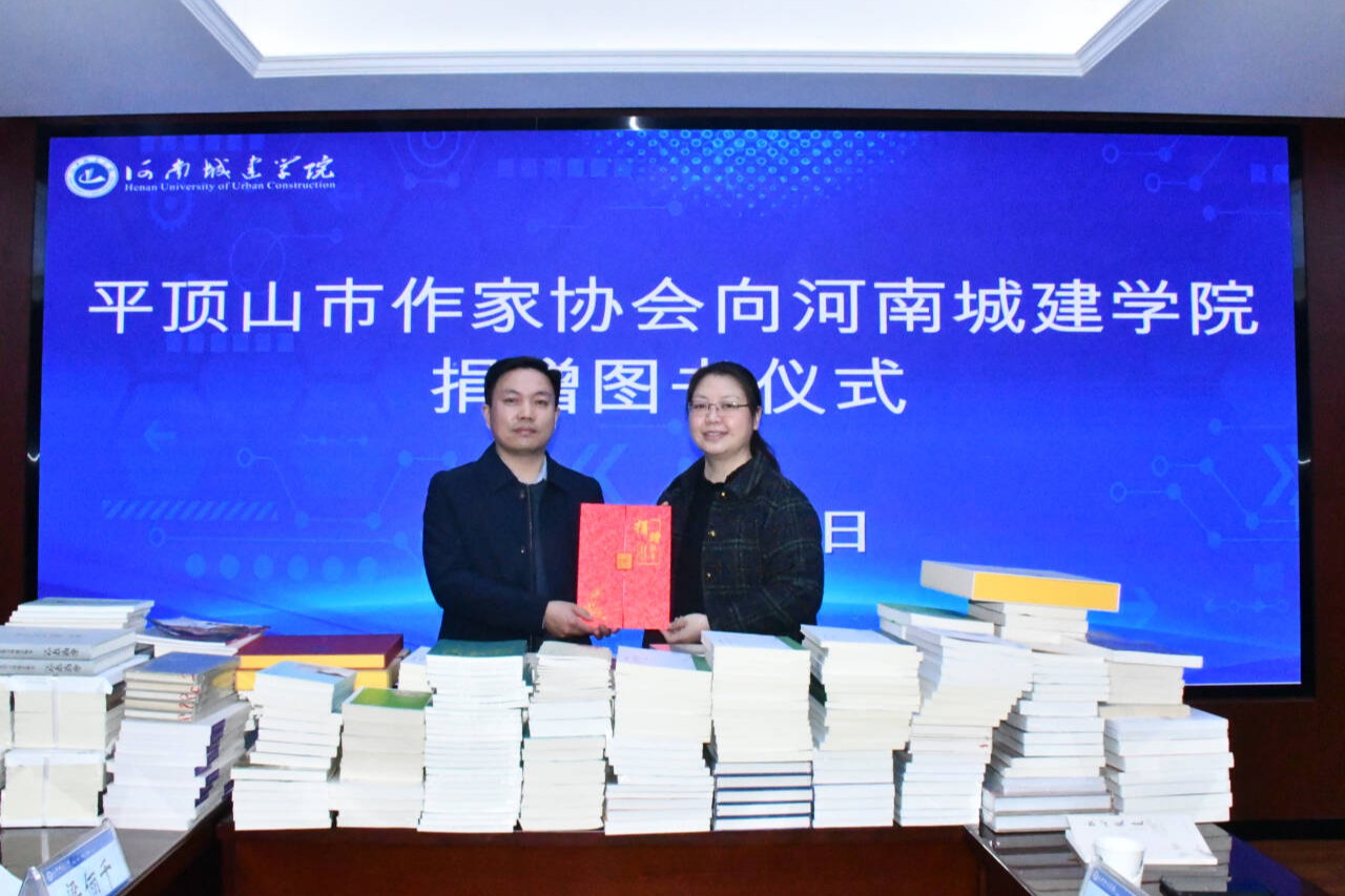 11月17日,平顶山市作家协会图书捐赠仪式在我校行政楼五楼会议室举行。平顶山市作家协会向我校图书馆捐赠了一批珍贵图书,对于丰富我校图书馆馆藏、扩展师生阅读范围提供了积极支持。