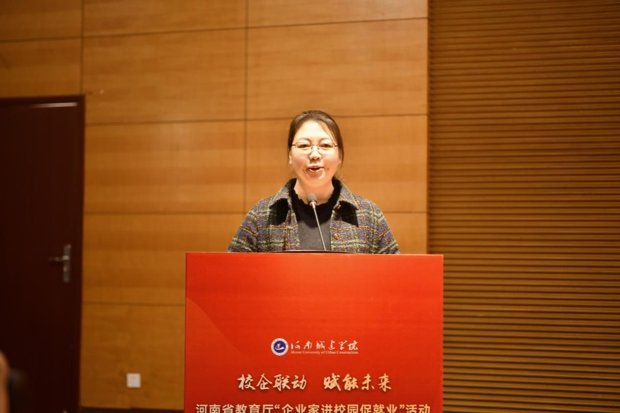 活动伊始,陈桂香致辞,她代表学校对出席活动的领导、企业家及兄弟高校同仁表示欢迎。她指出,高校作为人才培养主阵地,与企业、地方发展紧密相连,“企业家进校园促就业”活动为校企双方搭建了高效沟通的平台,既有助于学生明晰行业趋势、树立正确就业观,也为高校人才培养改革、专业建设优化提供了实践依据。学校将以此次活动为契机,进一步深化产教融合,推动教育教学与产业需求精准对接,为区域经济社会发展输送更多高素质应用型人才。