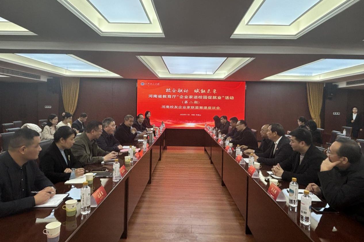 活动期间,河南校友企业家联盟筹建座谈会在我校行政楼五楼会议室同步召开,座谈会由岳修峰主持,来自平顶山市高校的10家校友企业代表、校领导及招生就业处相关负责人参加座谈会。会议围绕“联络服务校友企业家的经验做法”“校友企业家在促进就业创业方面的成绩和主要举措”“对筹建全省校友企业家联盟的建议”三大议题展开深入交流,大家各抒己见、建言献策,为凝聚校友力量、搭建校友企业与高校合作平台、推动毕业生就业创业达成共识。