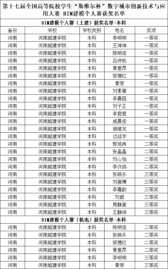 我校管理学院高度重视此次赛事,从赛前筹备、导师指导到团队组建,给予了全方位支持。BIM竞技社学子在指导教师的悉心带领下,反复打磨参赛作品,不断优化方案细节。本次大赛中,我校学子收获颇丰:获一等奖14项、二等奖8项、三等奖8项。