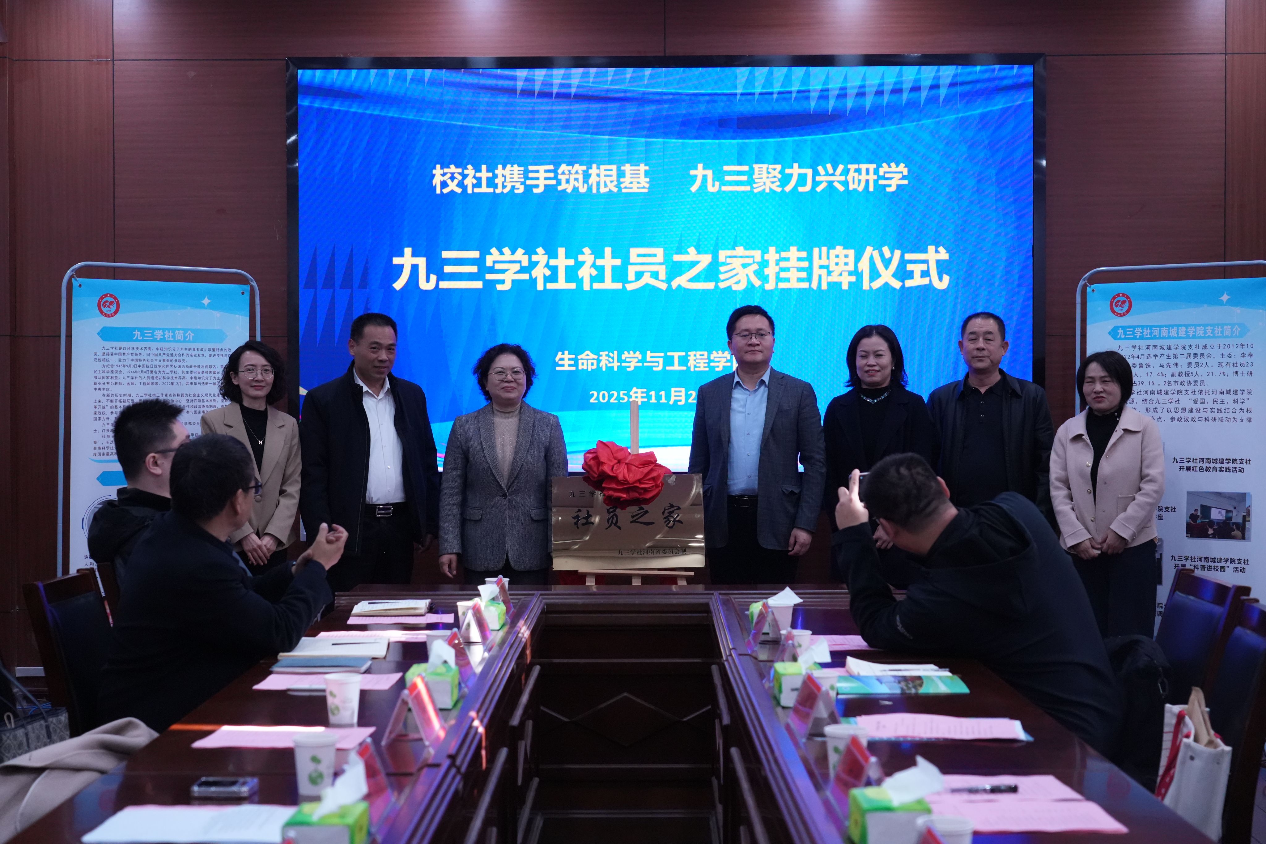 11月27 日上午,九三学社河南城建学院支社“社员之家”揭牌仪式在我校生命科学与工程学院会议室举行。平顶山学院副校长、九三学社平顶山市委会主委米立伟,我校党委副书记、工会主席王靖出席仪式并共同为“社员之家”揭牌。九三学社平顶山市委会专职副主委张萍,我校党委委员、统战部部长张守义,生命科学与工程学院班子成员及兄弟党派代表、支社骨干社员等参加仪式。仪式由生命科学与工程学院副院长朱涛主持。