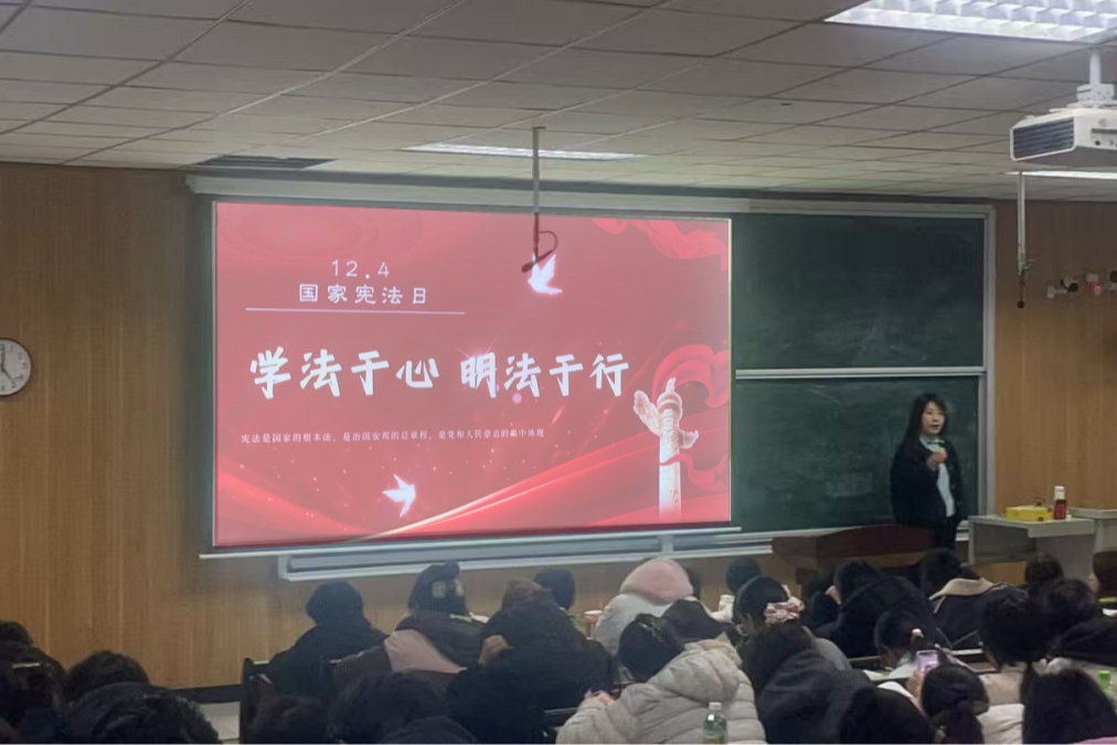 今年12月4日是第十二个国家宪法日。为全面落实党的二十大和二十届三中、四中全会精神,深入学习贯彻习近平法治思想和习近平总书记对全面依法治国工作的重要指示以及中央全面依法治国工作会议精神,认真实施《法治宣传教育法》,加强宪法宣传教育,弘扬宪法精神,维护宪法权威,推动宪法实施,为推进中国式现代化营造良好法治环境。我校法学院在鹰城广场以及学校成功开展“学习宣传贯彻习近平法治思想,推动宪法深入人心”为主题的系列活动。