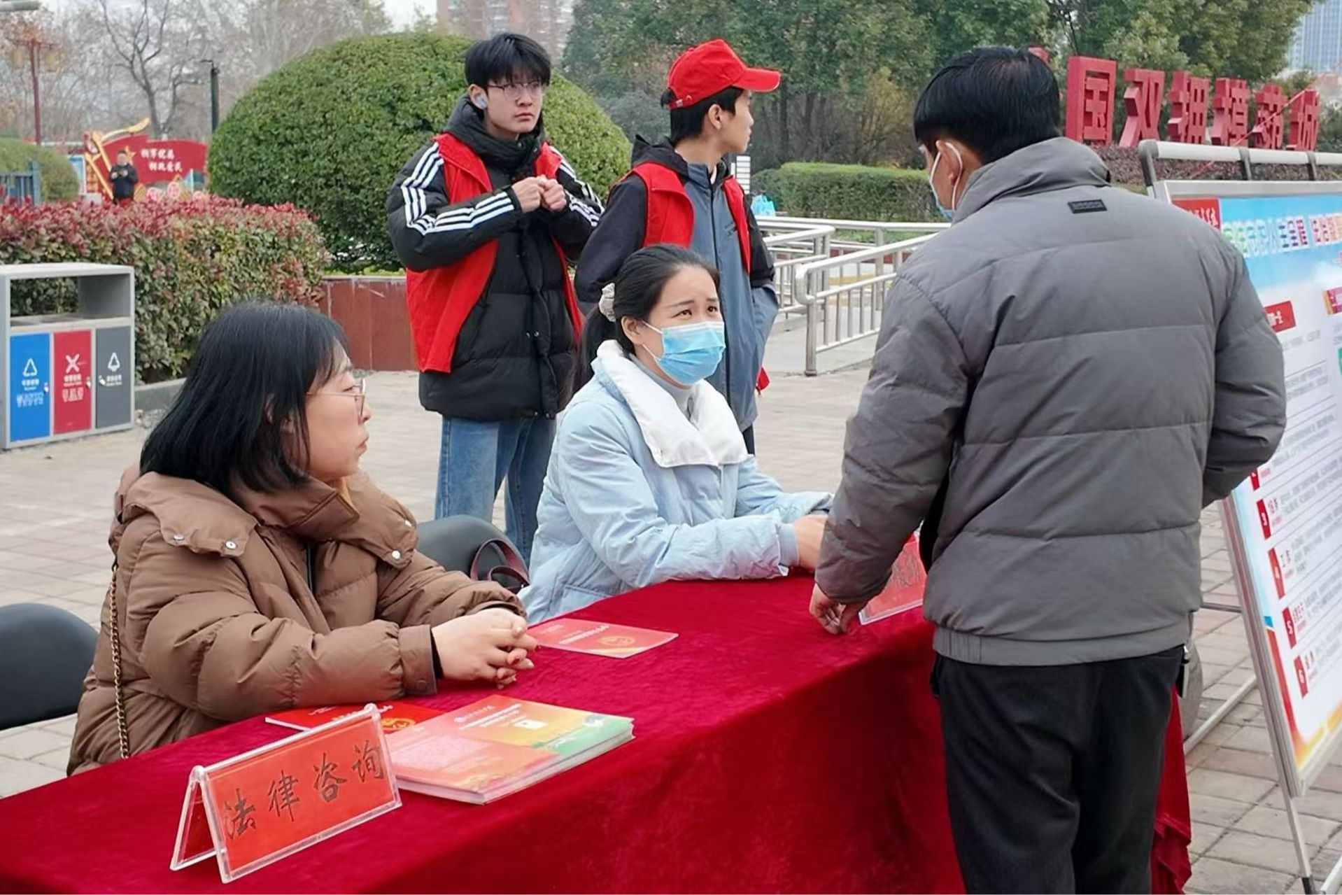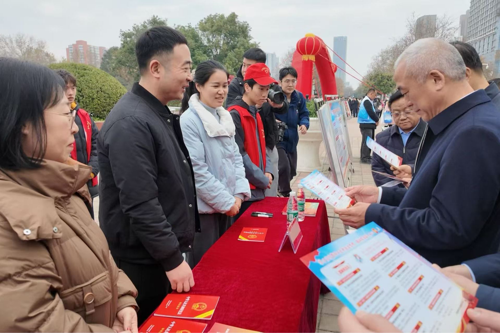12月4日,普法志愿者在鹰城广场通过设立法律咨询台、发放普法手册等方式,针对婚姻家庭纠纷、劳动权益保障、未成年人保护等民生热点问题提供专业细致的解答。