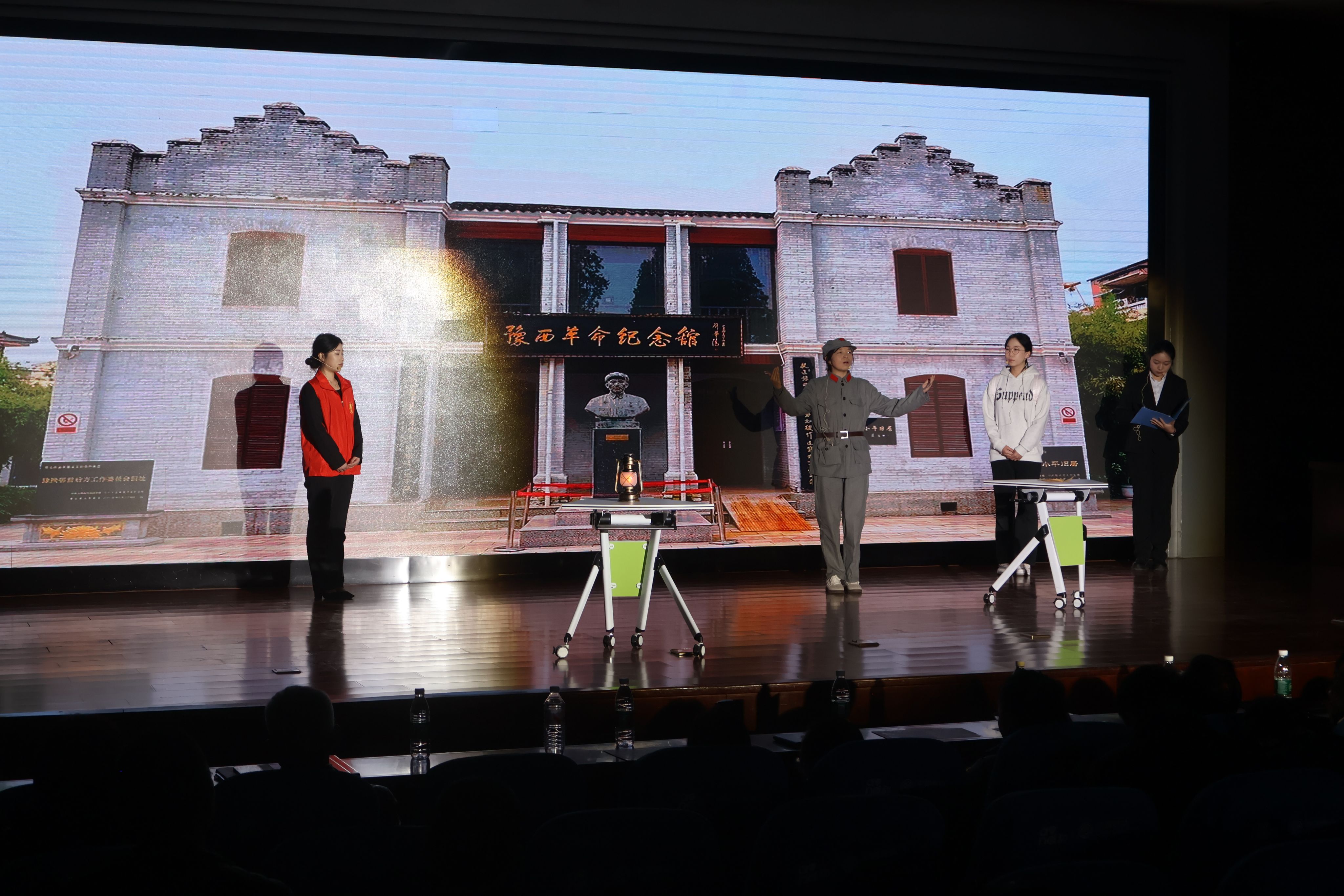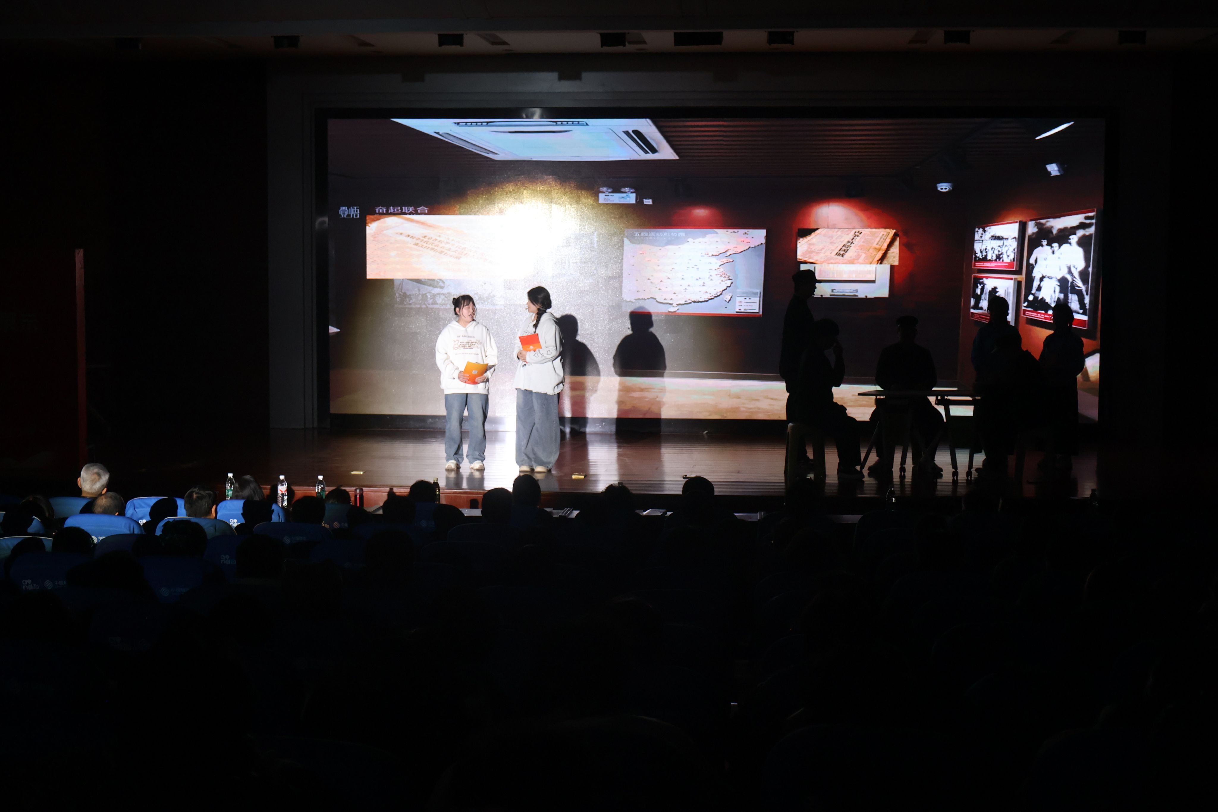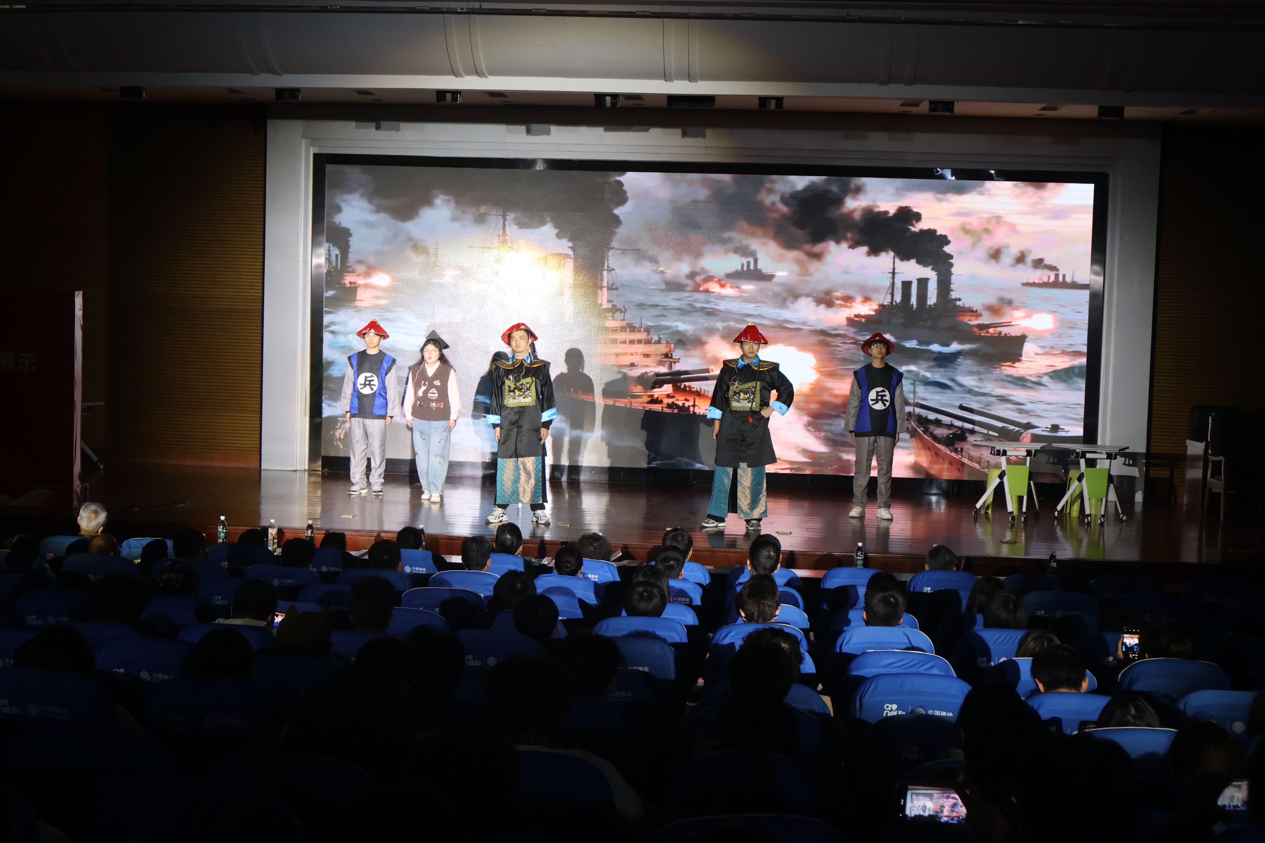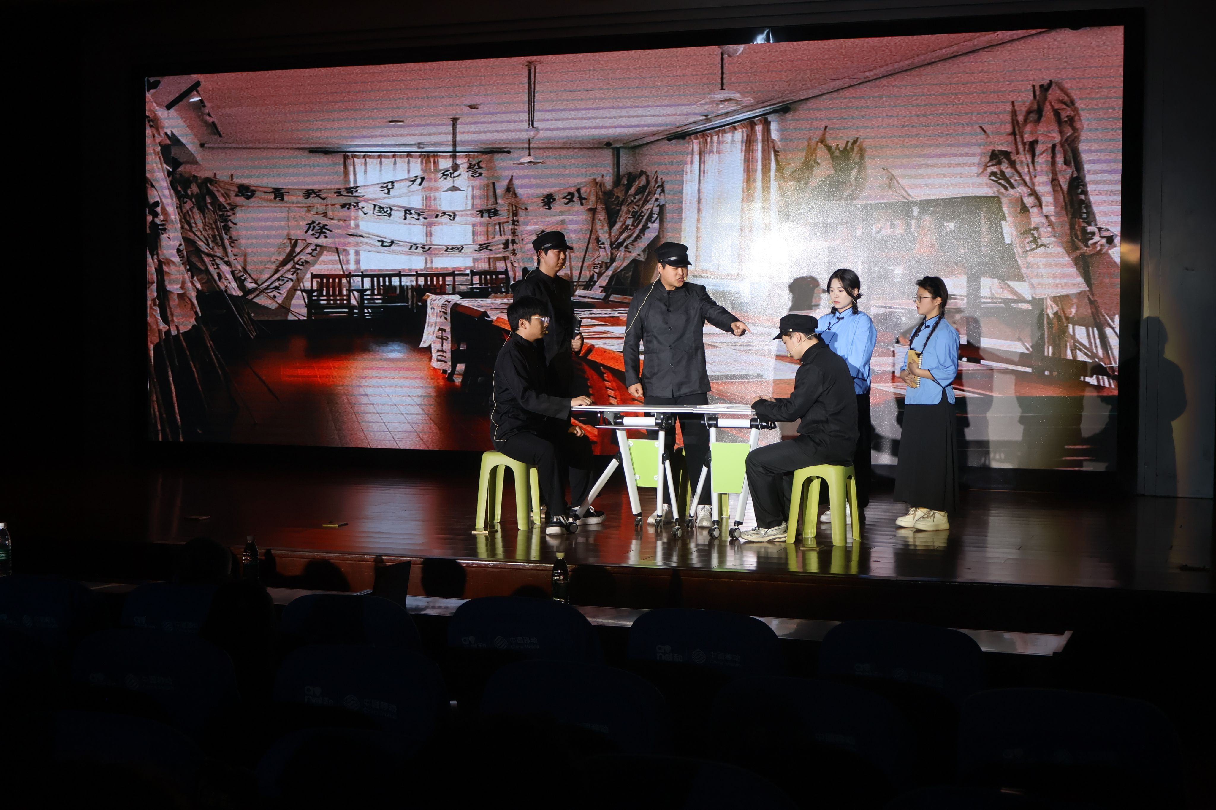 成果展示以情景剧、社会观察微视频、演讲、演唱等多种形式,生动表达了当代青年大学生将思政课理论知识与社会实践课堂紧密结合的学习感悟,展示了我校思想政治教育协同育人的丰硕成果。其中,舞台剧《一个人的红色觉醒》以独特的穿越视角,让当代青年与不同时期的代表人物隔空对话,从“躺平摆烂”的迷茫到“为国担当”的觉醒,展现出当代大学生坚定的理想信念,从原创舞台剧《1894,勿忘甲午》到新时代的《脱贫之路》,既有对历史的深情回望,也有对当下的生动诠释,更有对未来的美好期许,让观众在历史与现实的碰撞中,深刻理解了“铭记历史、勇担使命”的真正内涵。歌曲《弹起我心爱的土琵琶》表现了抗战时期游击队员在艰苦环境中的坚强意志和乐观精神,情景剧《何谓爱国?爱国何为?》结合同学们拍摄的社会实践视频——回顾过去、正视现在、感悟未来等片段,以情景对话、采访互动的形式,探寻不同时代的爱国内涵与不同岗位的爱国行为,以深沉的爱国思考及强烈的社会责任感,赢得现场阵阵掌声,合唱《我和我的祖国》表达了对祖国浓浓的爱恋,进一步突出和升华了活动主题,将成果展示推向高潮。