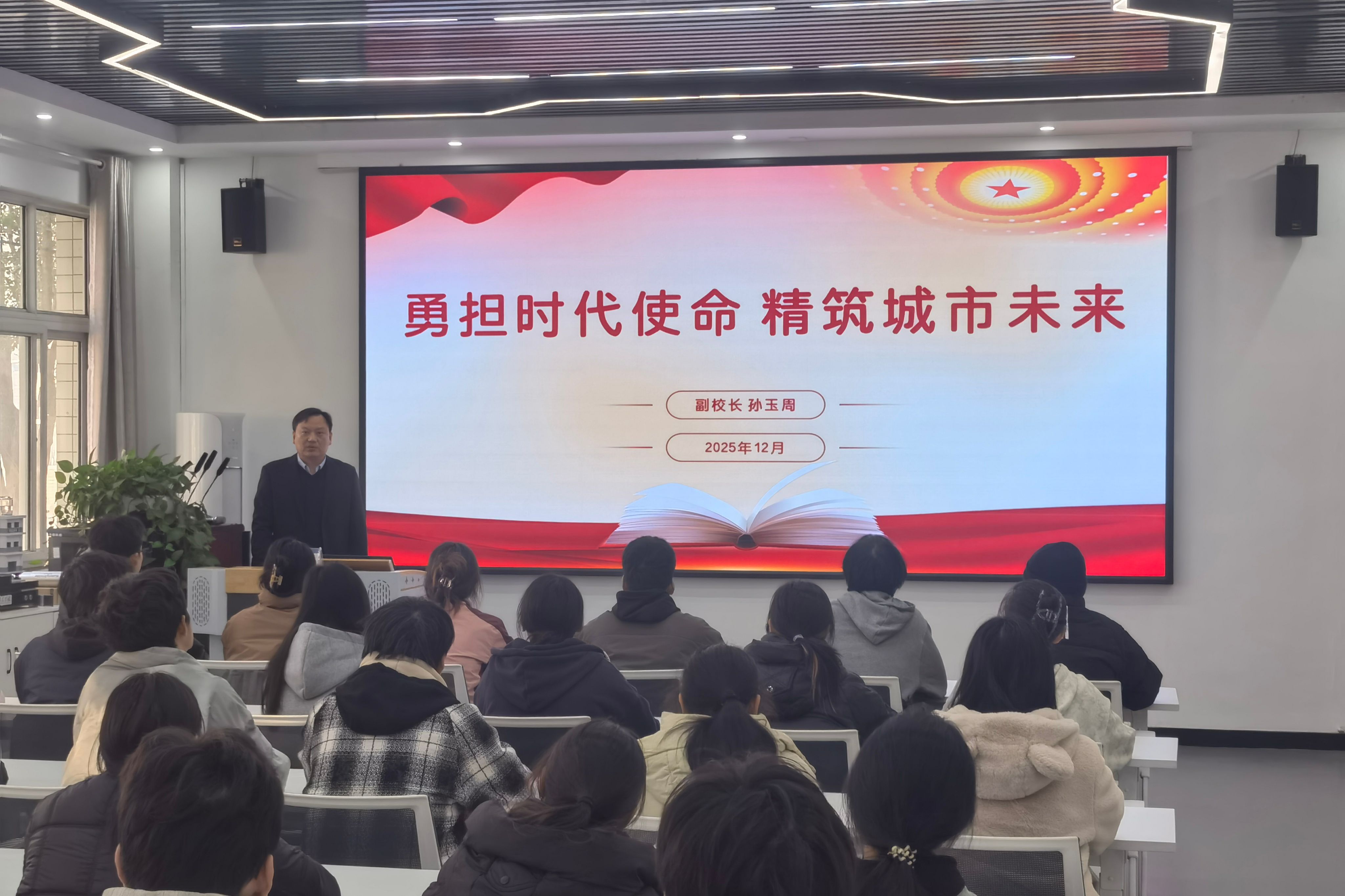 为深入学习贯彻党的二十届四中全会精神和中央城市工作会议精神,12月16日,副校长孙玉周在八号楼A105会议室作《勇担时代使命 精筑城市未来》专题宣讲报告。智能建造与交通工程学院,计算机与人工智能学院,国际教育学院学师生代表参加了此次宣讲学习。