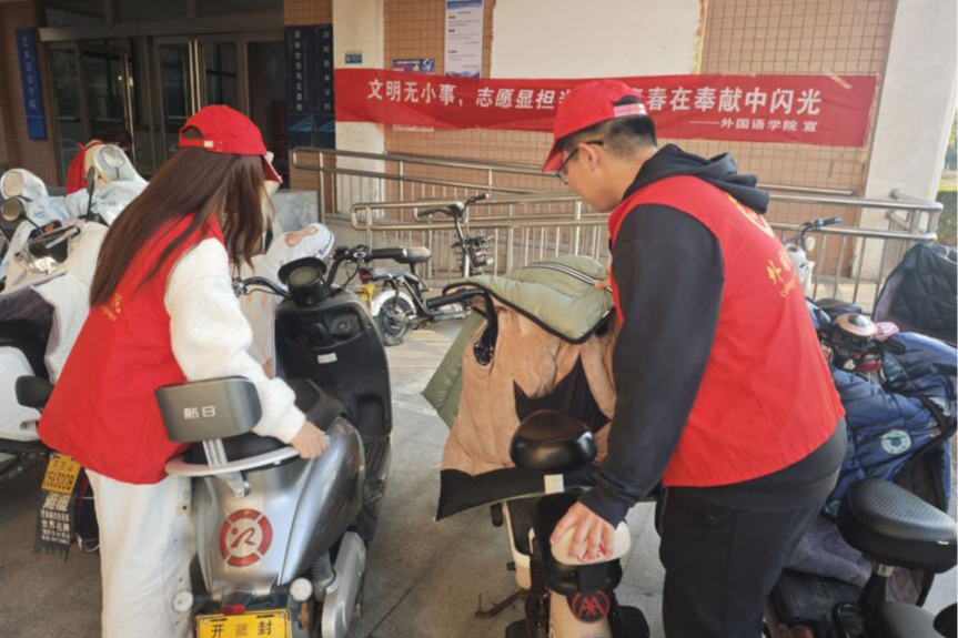 文明校园,健康出行。为普及交通安全知识,倡导文明绿色出行,校青协开展“文明校园,绿色出行”主题活动,规范校内车辆摆放,引导学生有序停放自行车、电动车。智能建造与交通工程学院开展“文明校园,健康出行”主题宣传活动,维护校园交通秩序。外国语学院开展“出行守秩序,绿色步行护校园”活动,引导学生养成文明安全的出行习惯。