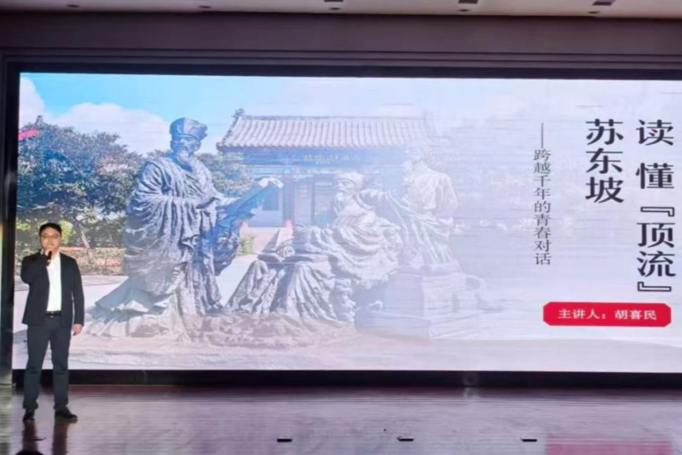 决赛现场,辅导员代表重温《高校辅导员誓词》,坚定育人初心。电气工程学院辅导员胡喜民以“读懂‘顶流’苏东坡——跨越千年的青春对话”为题为现场师生带来特色主题团课,从传统文化中汲取育人智慧,提升思政工作的感染力与内涵深度。