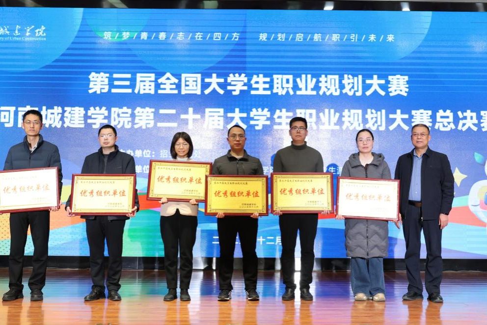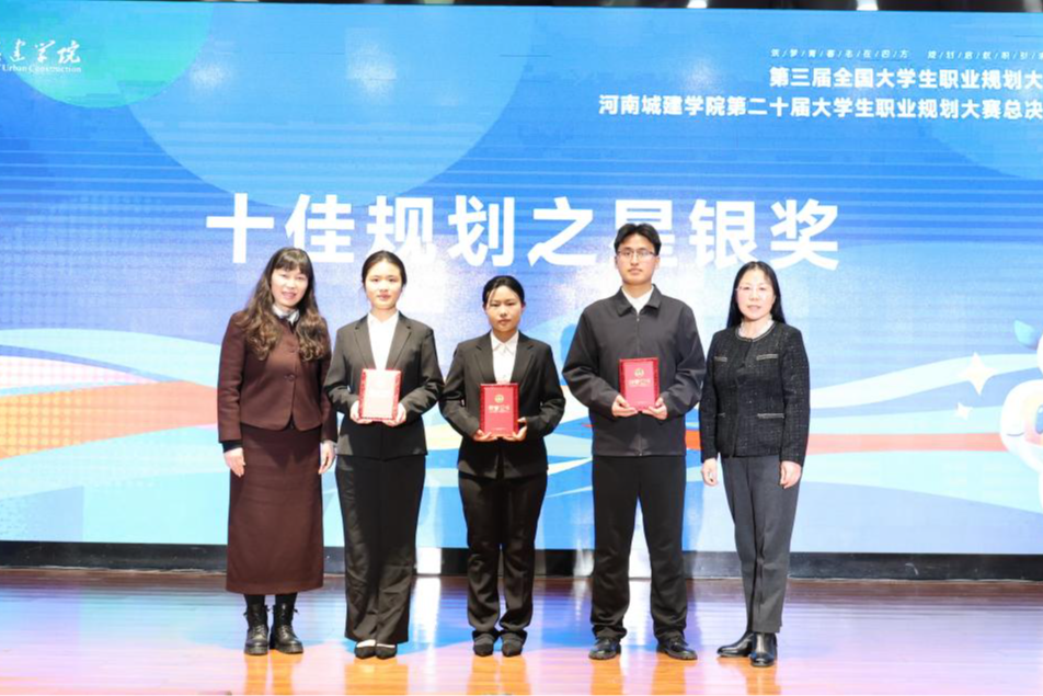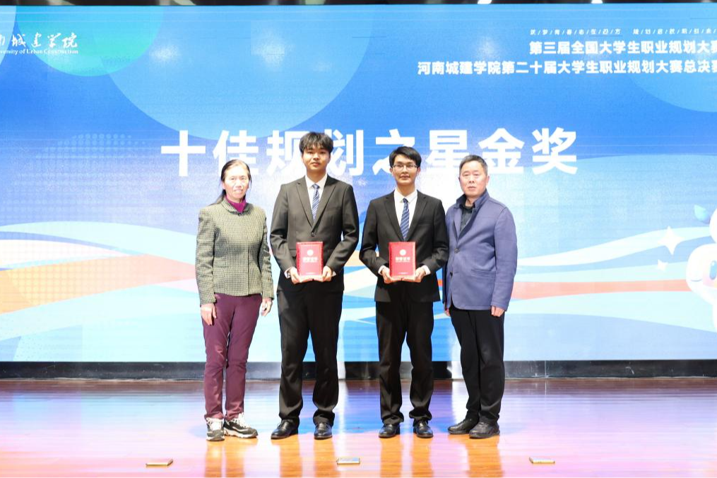 经过紧张激烈的角逐,计算机与人工智能学院宋鸿运、电气工程学院刁贵仁获得十佳规划之星金奖;时空信息工程学院陈巧、法学院郭庆、生命科学与工程学院汪启源获得十佳规划之星银奖;计算机与人工智能学院尚梓涵、外国语学院张靓、智能建造与交通工程学院闫普庆、计算机与人工智能学院郝梦真、研究生院王淼获得十佳规划之星铜奖。计算机与人工智能学院、外国语学院、智能建造与交通工程学院、材料与化工学院、市政与环境工程学院、国际教育学院6个单位荣获优秀组织奖。李青岭、评委嘉宾及招生就业处相关负责人为获奖个人与集体颁奖,并合影留念。