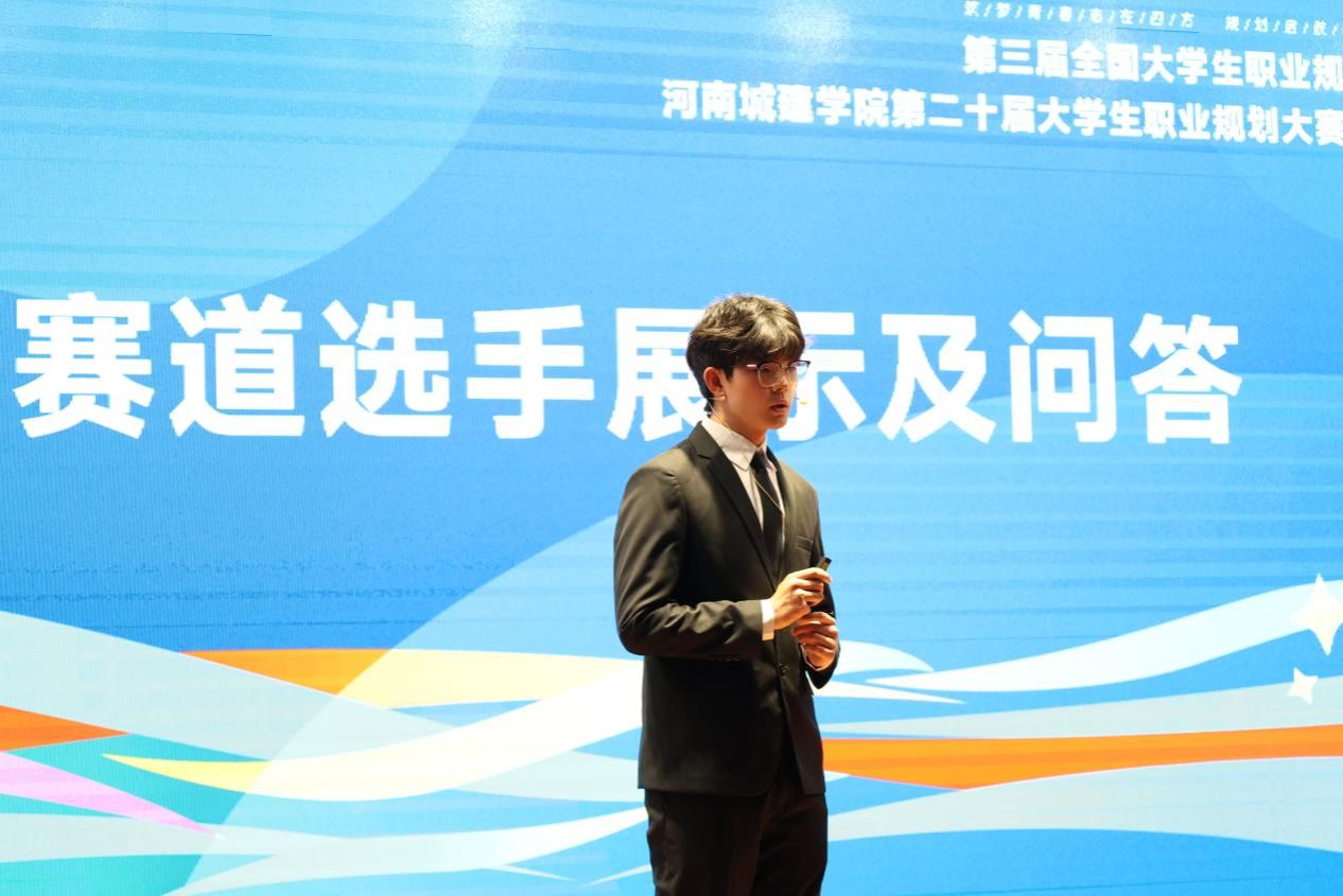 总决赛现场,参赛选手意气风发、从容自信,尽显城建学子的昂扬风貌。从智慧城市的数字孪生建模师,到智慧农业的AI算法工程师;从筑牢产业基石的电气、材料工程师,到解锁物流新场景的低空无人机快递员,再到扎根乡土、助力振兴的第一书记……选手们的职业规划紧扣国家发展战略主线,紧跟时代前行脉搏,既充分彰显河南城建学院的专业优势与办学特色,更生动诠释新时代青年胸怀家国、勇担重任的初心与担当。答辩环节亮点纷呈,评委们围绕职业目标可行性、行业发展认知深度、人岗精准匹配度等关键维度层层设问,既直击核心开展精准点评,又给出了兼具专业性与实用性的优化建议。现场还增设了心选团Offer环节,15家企业代表向优秀选手抛出就业Offer,实现职业规划与企业招聘的“无缝对接”。