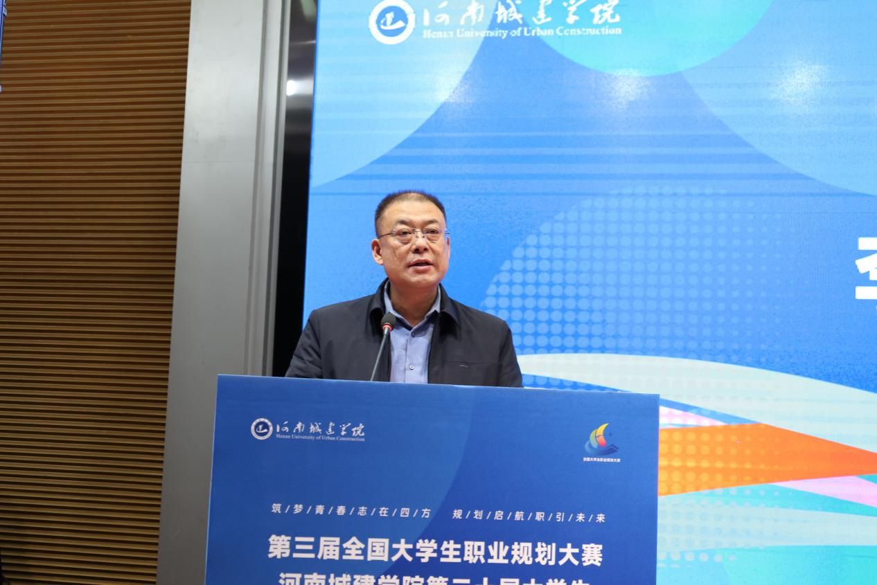 李青岭在致辞中代表学校向出席赛事的领导、专家、企业代表及师生表示欢迎。他指出,职业规划是大学生锚定人生方向、实现成长成才的“导航仪”,是学校贯彻就业优先战略、深化产教融合、促进高质量充分就业的创新实践。他鼓励同学们以大赛为契机,在专业规划中锤炼核心能力,既怀抱“城建报国”的远大理想,又立足行业需求脚踏实地,在未来职场中展现新时代城建学子的责任与担当。
