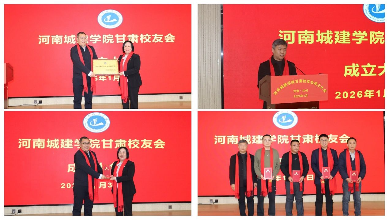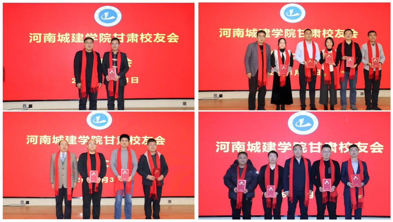 毛艳丽为甘肃校友会授牌,并为第一届理事会会长颁发聘书,宋帅奇宣读了《关于成立河南城建学院甘肃校友会的批复》,并为副会长颁发聘书,杨毅为秘书长颁发聘书,赵兴涛、田长勋为理事会其他理事颁发聘书,李颖泉为副秘书长颁发聘书。