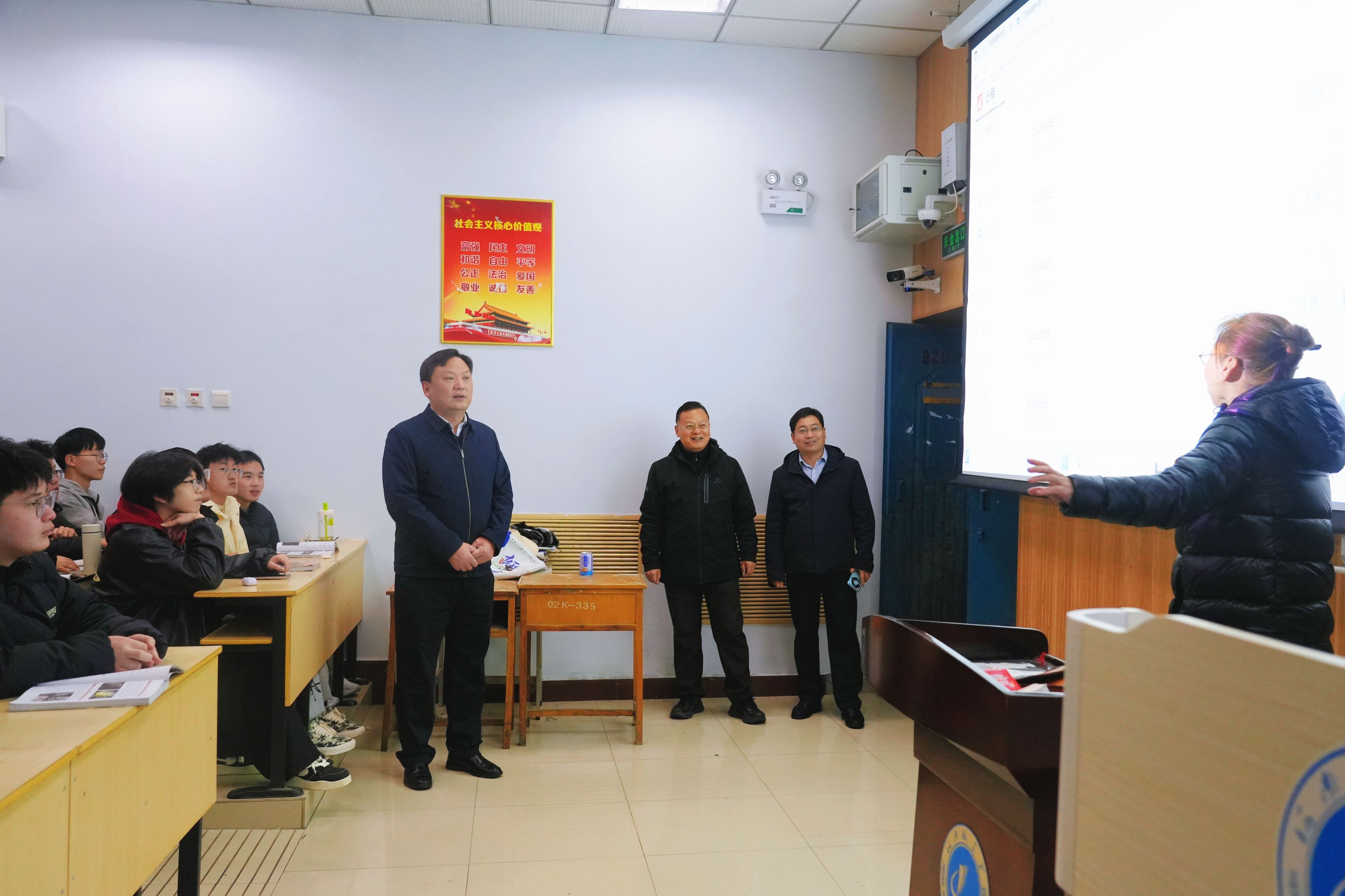 孙玉周一行实地走访各教学院(部),重点查看课表执行、师生到课率、课堂纪律、教室内外环境及教学设备运行状况等情况,全面掌握新学期教学工作整体开展态势。从检查情况来看,新学期课堂教学秩序井然,教师提前到岗、备课充分,学生按时到课、精神饱满,多媒体等教学设备运行正常,各项教学保障工作落实到位。针对检查过程中发现的问题与不足,孙玉周提出具体整改要求,督促相关部门压实整改责任、加快推进落实,确保整改工作责任到人,全程可溯。