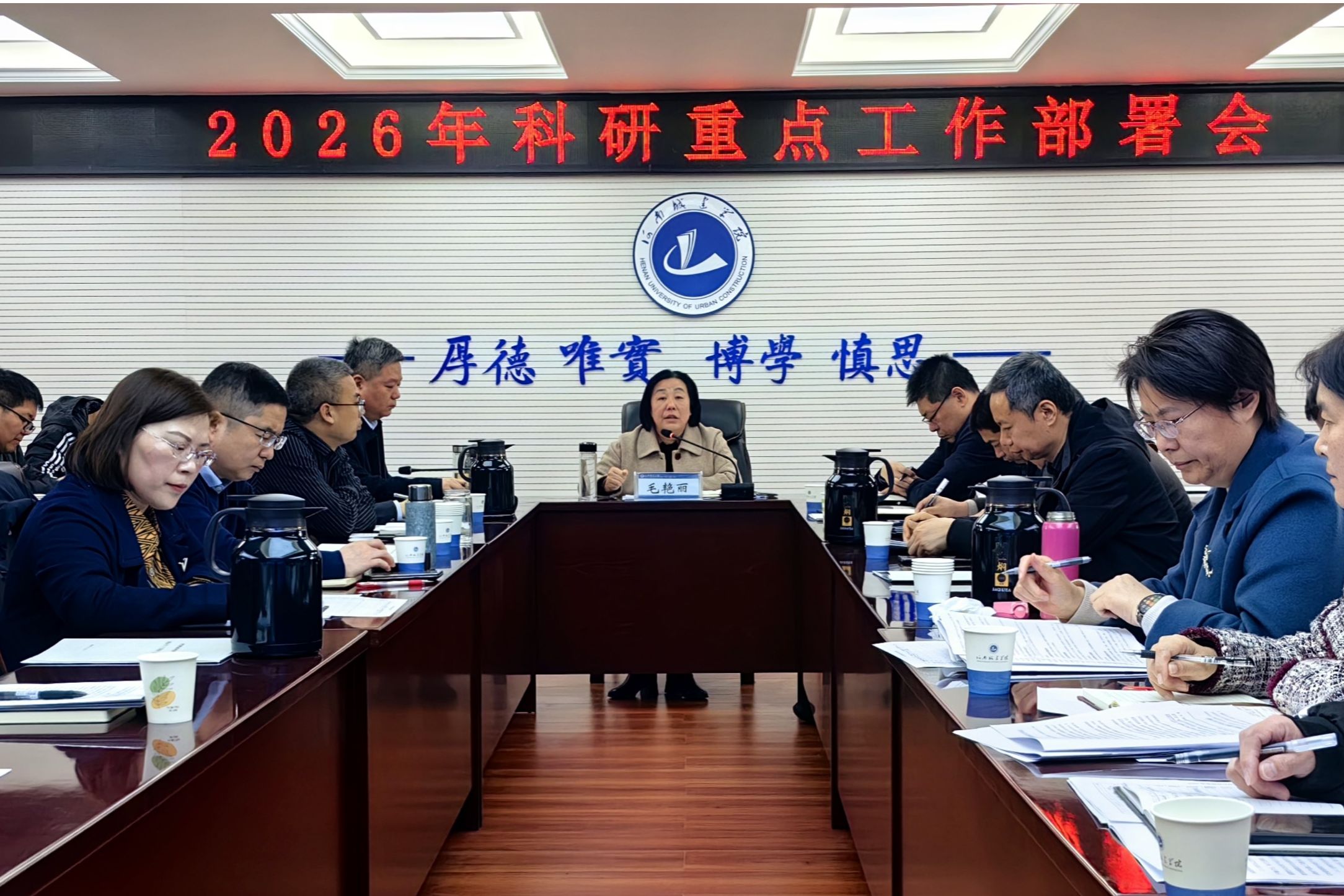 3月13日上午,我校在行政楼五楼会议室召开2026年科研重点工作部署会。副校长毛艳丽出席会议并讲话,各学院(部)院长、主管科研副院长、研究院负责人、科研办主任及科技处全体人员参加会议。会议由科技处处长张大力主持。