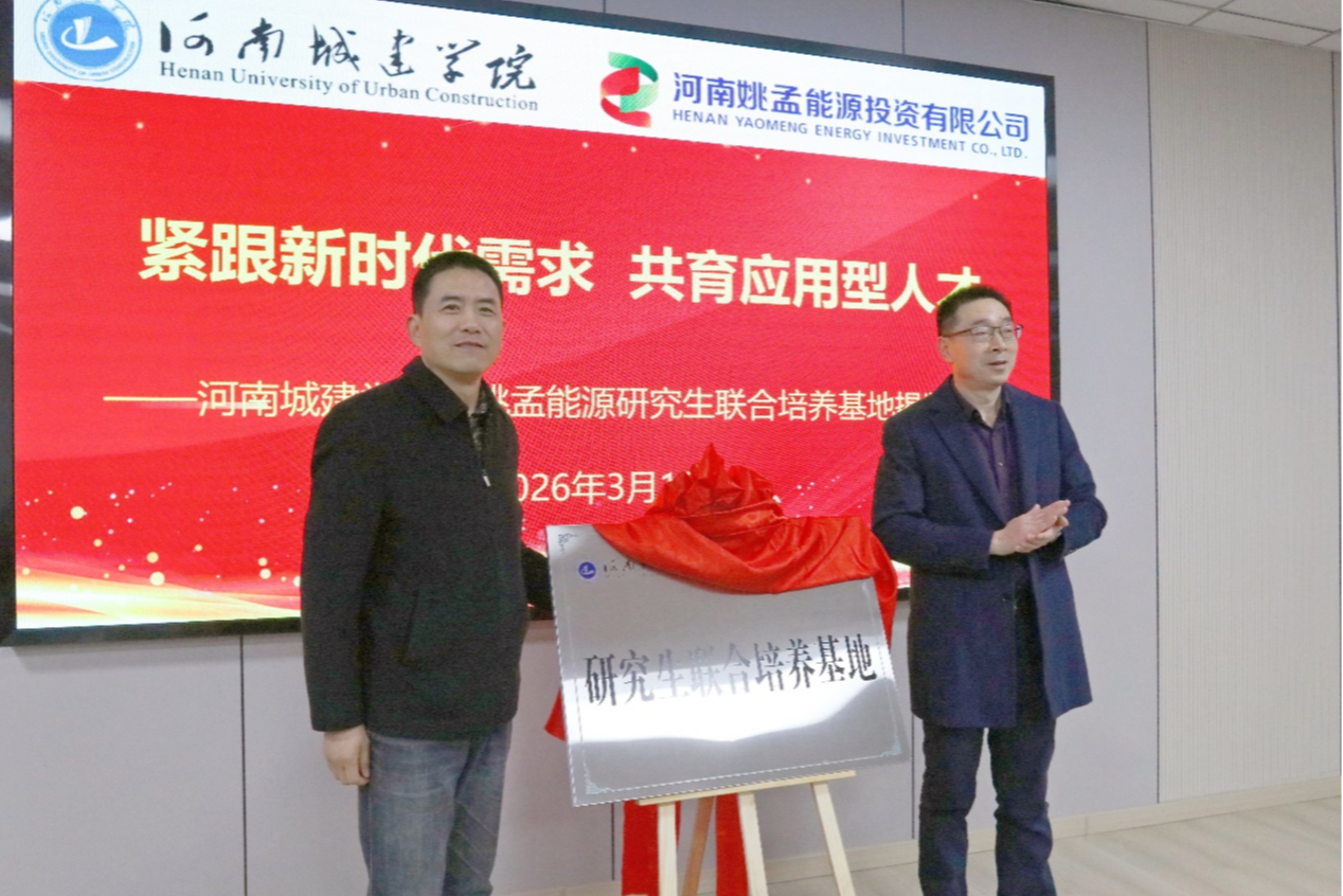 活动现场,王许涛与刘丹共同为“河南城建学院—河南姚孟能源投资有限公司研究生联合培养基地”揭牌。