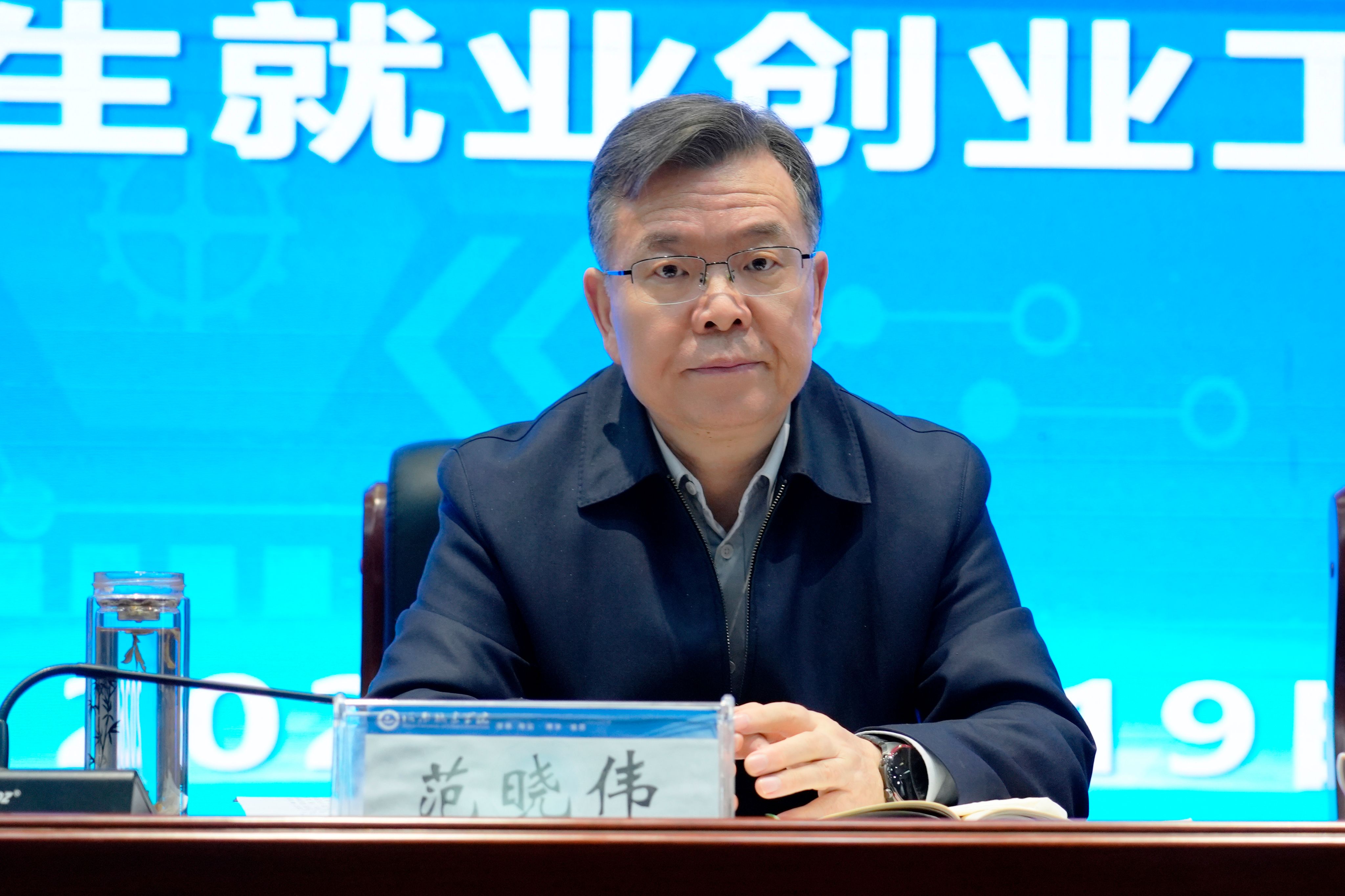 范晓伟在会上传达了全国高校毕业生等青年就业创业工作视频会议精神。他在讲话中充分肯定我校2025年毕业生就业创业工作的成效,就进一步做好2026届毕业生就业工作提出四点意见:一是提高政治站位,增强就业工作责任担当。要深化思想认识,高度认识做好毕业生就业工作的极端重要性和现实紧迫性;要认清就业形势,持续把就业工作作为一项重大政治任务,摆在更加突出的位置,增强主责意识,要压实工作责任,构建全员、全过程、全方位促就业协同机制。二是锚定就业质量,提升人才培养与社会需求适配性。要统筹谋划、突出重点,坚持“招培就”一体联动,建立健全毕业生跟踪反馈机制,及时掌握社会需求变化,构建供需双向调节机制,使人才培养更加精准地对接经济社会发展需求。三是拓展就业市场,多渠道挖掘岗位资源。强化校园招聘主渠道,挖掘优质岗位资源;强化就业宣传引导,稳定政策性岗位规模;鼓励灵活就业,挖掘新产业、新业态岗位;开展访企拓岗行动,拓展市场岗位资源。四是优化就业指导,抓实重点群体帮扶。构建全方位、多层次、个性化的就业指导服务体系,实现个性化就业指导全覆盖;精准帮扶重点群体毕业生,建立重点群体毕业生就业帮扶工作台账。