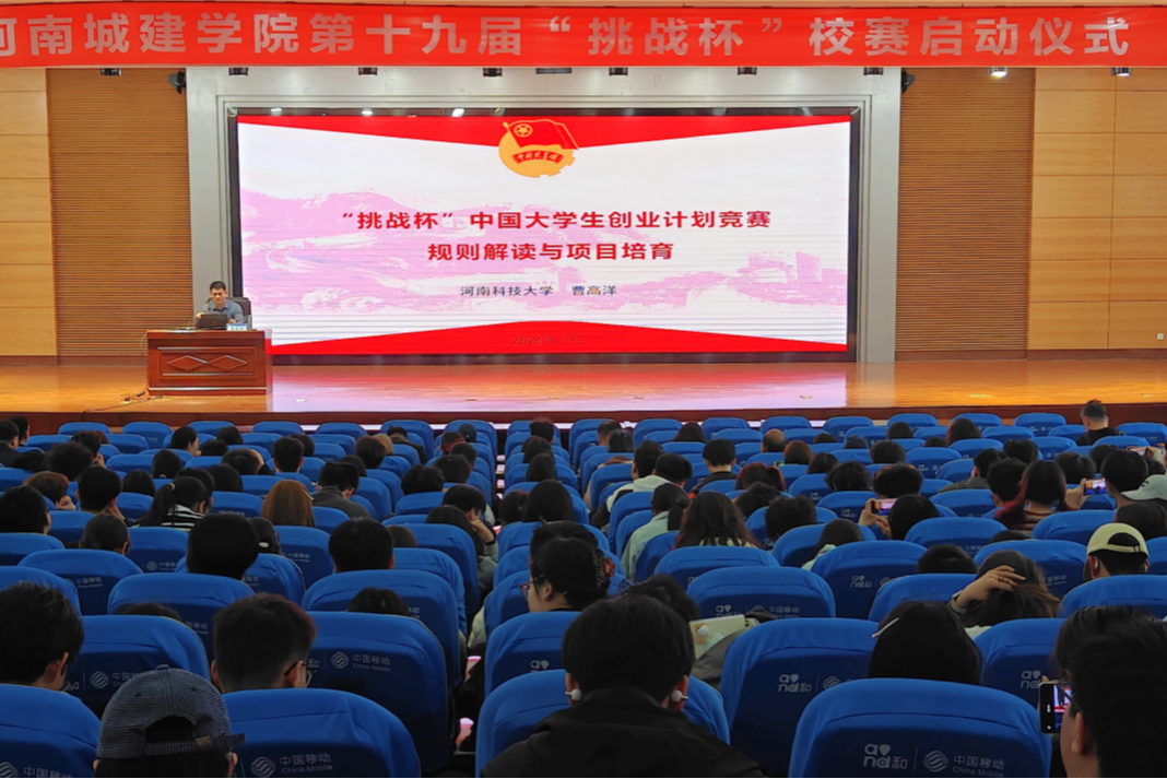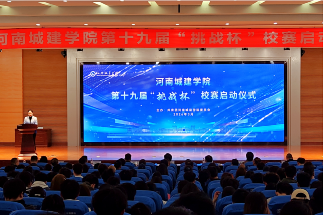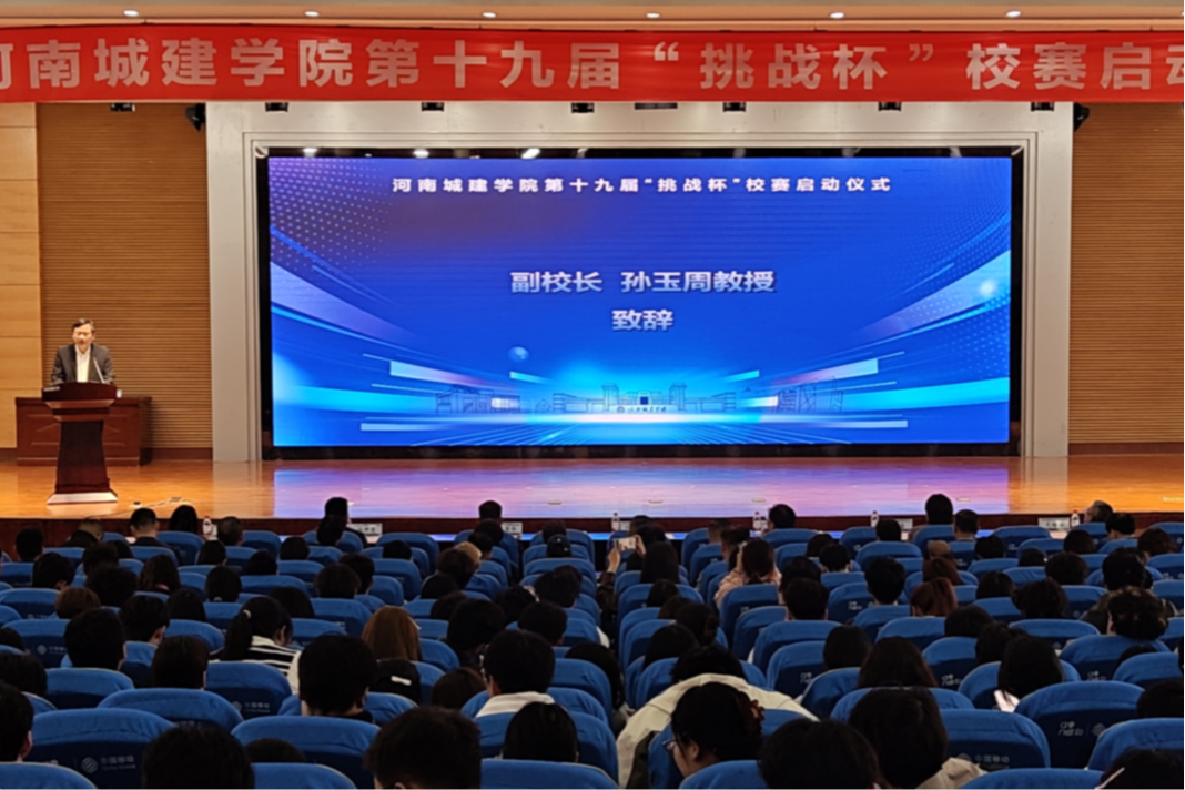 春风送暖,科创扬帆。3月27日下午,河南城建学院第十九届“挑战杯”竞赛校赛启动仪式在行政楼学术报告厅举行。副校长孙玉周,党委宣传部、学生处、教务处、科学技术处、研究生处、创新创业学院等相关职能部门负责人,各二级学院书记、院长、团委书记以及入围第十九届“挑战杯”决赛的项目团队指导教师和参赛学生代表齐聚一堂,共启科创新征程。启动仪式由团委书记腾飞主持。