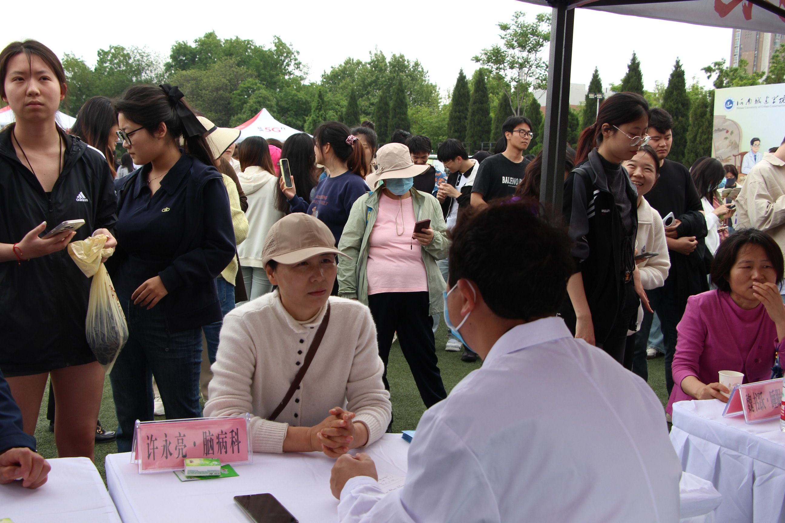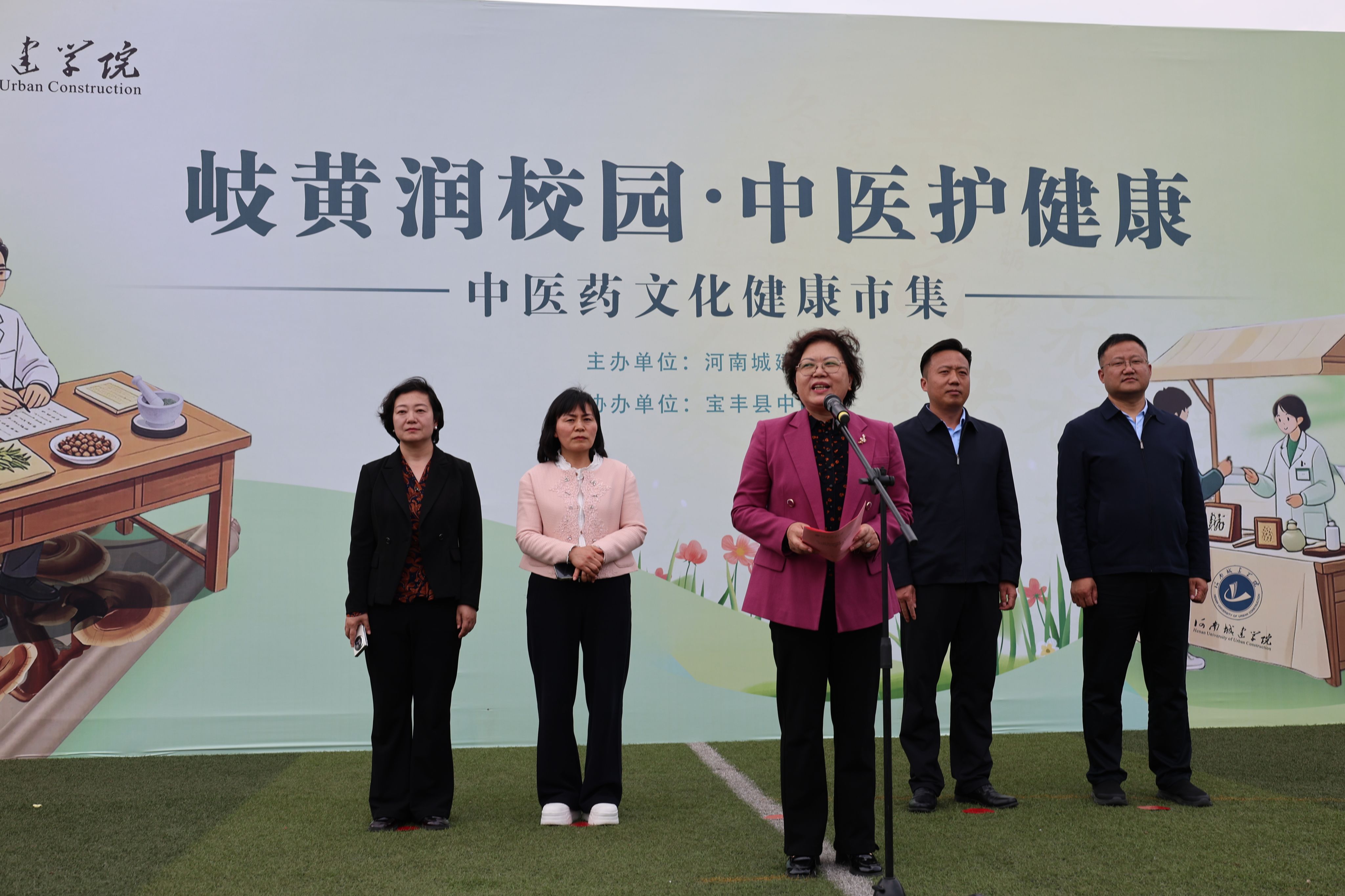 为贯彻落实教育部全面推进健康学校建设的指导意见,践行“健康第一”教育理念,4月16日下午,我校医院、校工会邀请宝丰县中医院专家团队在厚德体育场举办了以“岐黄润校园∙中医护健康”为主题的中医药文化健康市集活动。党委副书记王靖、宝丰县副县长孙志刚出席活动并致辞。启动仪式由校医院院长吴晶主持。