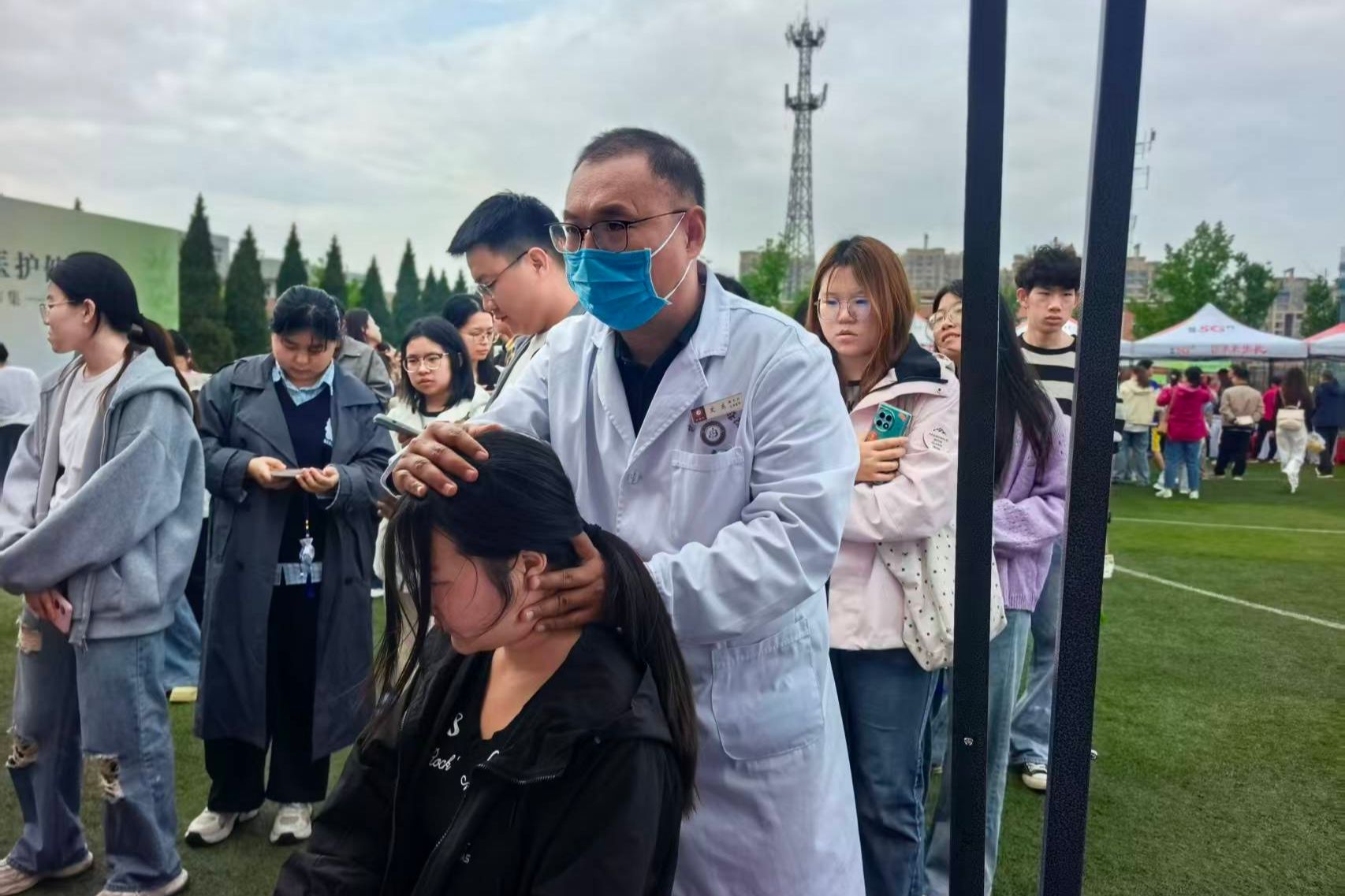 活动现场氛围热烈、内容丰富。来自宝丰县中医院经方委员会、温灸推拿科、皮肤科、眼科、口腔科、治未病中心等科室专家坐诊,为师生提供一对一辨证咨询、体质辨别、亚健康评估,量身定制食疗、茶疗等个性化养生方案;中医适宜技术体验区免费开展温灸、刮痧、耳穴压豆、穴位贴敷、核桃灸等服务,快速缓解身体不适;推拿康复理疗区针对教师久坐劳损、学生备考压力等问题,提供专业肩颈腰背推拿;养生茶饮区现场熬煮明目、利咽、安神、祛湿等特色茶饮,供师生免费品鉴;科普区通过现场教学、互动演示,传授简易保健操、穴位按压、日常养生技巧,并发放中医药科普手册;综合服务区免费提供血压、心率检测,师生关注公众号即可领取中药香包,中医专家们为师生提供了体质辨识、慢病调理、推拿按摩、穴位贴敷、养生咨询等多项中医保健服务,细致解答颈肩腰腿痛、睡眠调理、季节养生等常见健康问题,传授实用的保健方式方法。现场还设置了养生药茶品鉴、中药香囊发放等环节,融知识性、趣味性、体验性于一体,吸引了众多师生踊跃参与。师生们在体验中医理疗、学习养生知识的过程中,切实感受到中医药“治未病”的独特优势,进一步增强了健康意识与文化自信。