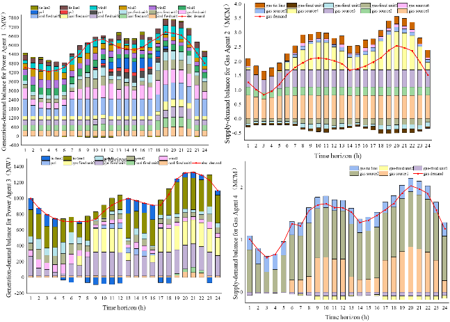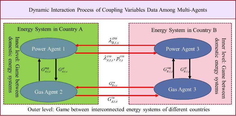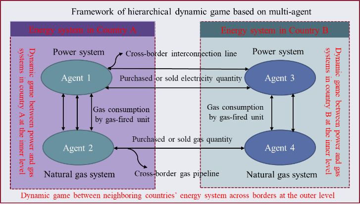 创新点一:针对电、气异质能源系统之间信息交互受限、不同的利益主体具有不同的利益诉求等问题,提出了基于多智能体的多元主体内外双层互动博弈规划模型,在保障能源数据信息隐私前提下解决了互联互通能源网络扩展规划问题。