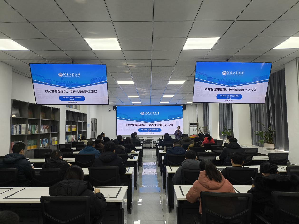 1月23日上午,河南工业大学研究生院副院长、博士生导师秦瑶教授应邀来校,作题为《研究生课程建设与培养质量提升》的专题报告。各学院主管研究生工作的副院长、研究生秘书、研究生专业课程任课教师及研究生处相关人员参加了报告会。