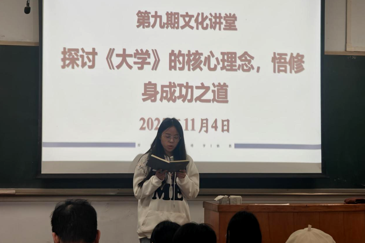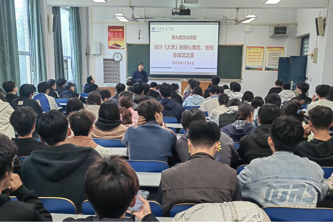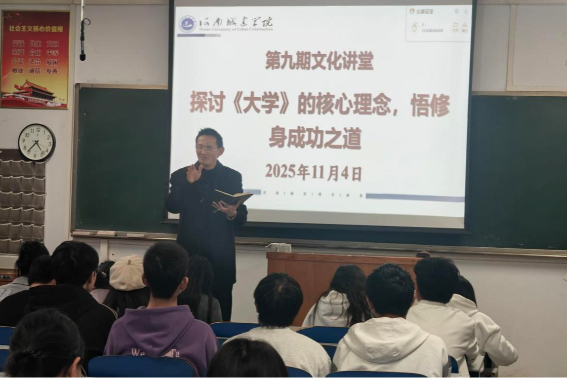 11月4日下午,由校文明办主办、能源与建筑环境工程学院(以下简称“能源学院”)承办的河南城建学院2025年第九期文化讲堂在3号教学楼A310教室成功举行。本次讲堂以“探讨《大学》的核心理念,悟修身成功之道”为主题,吸引了能源学院师生代表近110人积极参与。