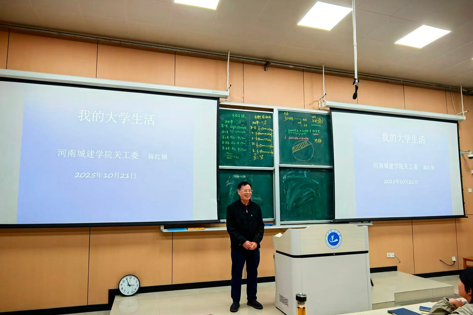 10月21日下午,河南城建学院关工委 “我的大学生活” 专题讲座在学校8号教学楼B109教室开讲,由校关工委“五老”代表、原土木与交通学院教授、现清华大学平顶山校友会会长陈红领主讲,校关工委秘书长王森主持。土木与交通学院、管理学院、市政与环境工程学院、建筑与城市规划学院60余名新生代表参会。