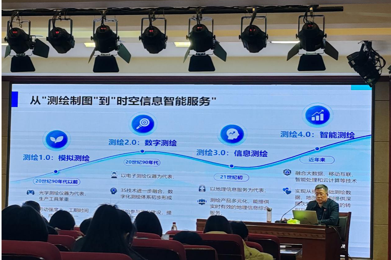 面向未来发展趋势,肖峰提出智能测绘将进一步与大数据、云计算、物联网等前沿技术交叉融合,不断拓展应用边界。他寄语在场师生,要夯实理论基础,培养跨学科思维,提升实践创新能力,以适应智能时代对测绘人才的新要求。