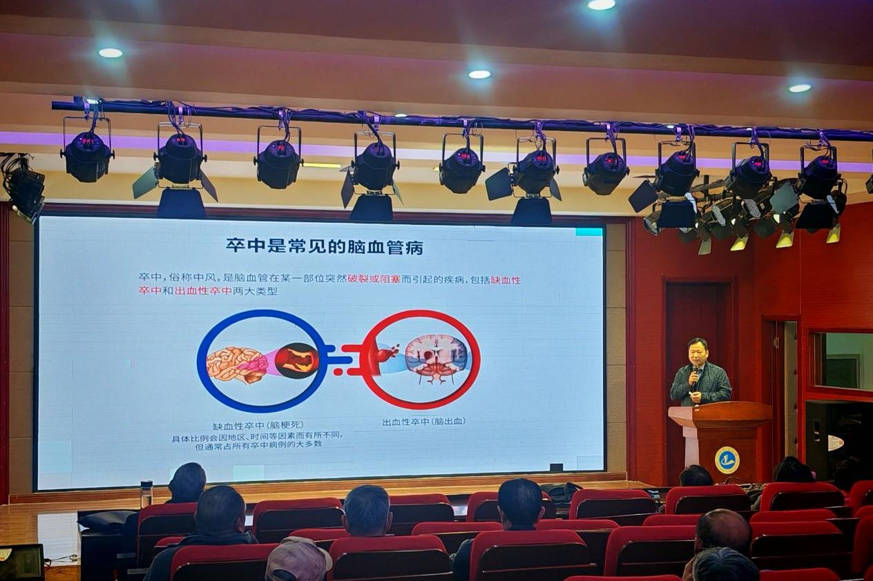 为切实守护退休职工身体健康,提升老年群体对急性脑血管病的科学认知与应急处置能力,11月19日下午,退休职工工作处、校医院联合989医院,在我校举办“急性脑血管病预防、识别与治疗”专题健康讲座。本次讲座特邀989医院急诊内科主任付徐伟主讲,近50名退休职工到场参与,现场学习氛围热烈。