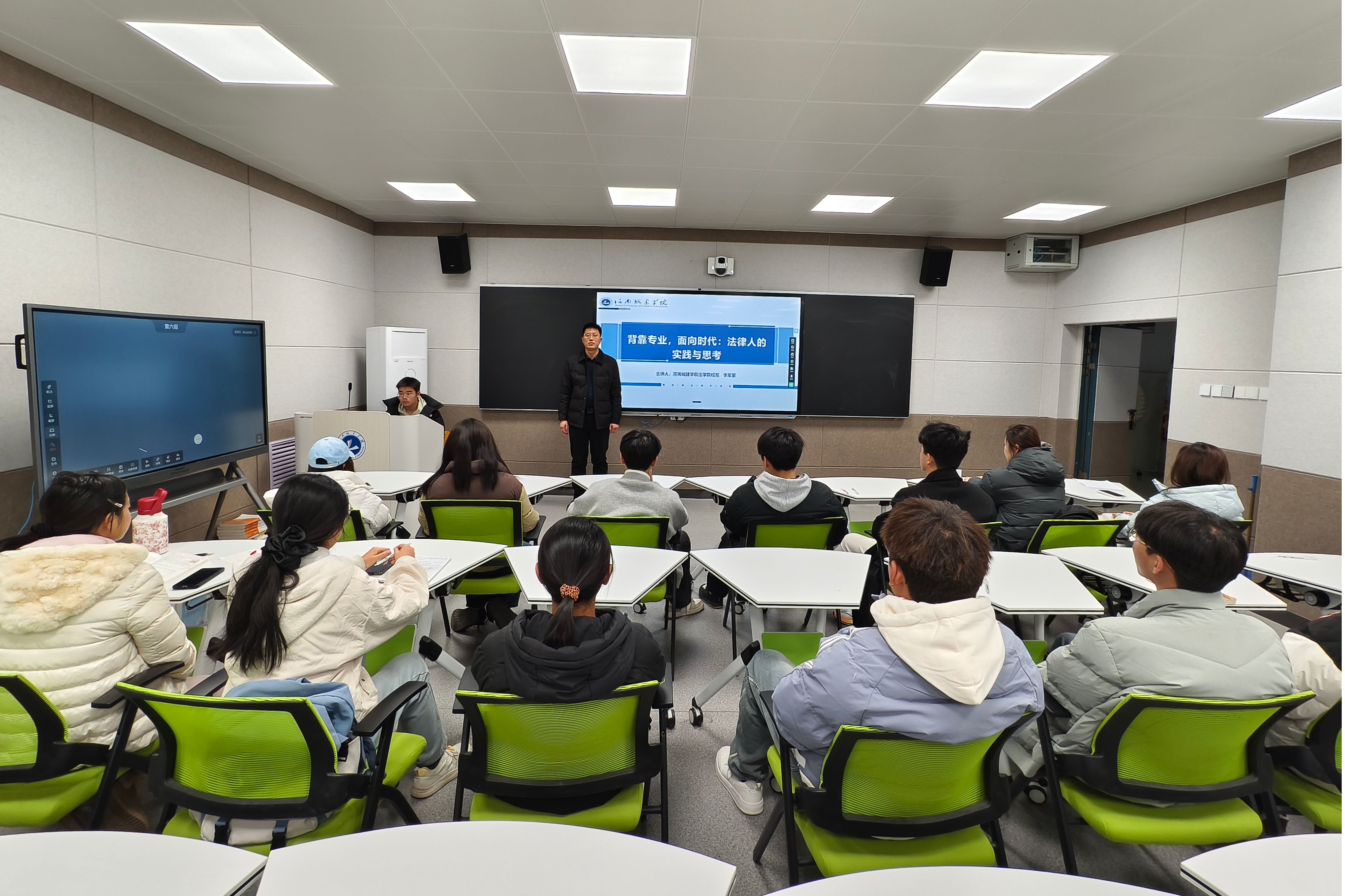 报告会上,李军蒙结合自己从“法科生”到“公职律师”到“行政综合管理”等近十年跨界成长经历,用“三个转身”概括了个人与时代同频的奋斗轨迹,强调“法律人既要让专业成为安身立命之本,更要把个人小坐标融入国家大布局。”李军蒙用亲身参与的城乡道路安全调研、区域重大项目安全保障、重大工程风险合规审查等案例,向学弟学妹们阐释了“专业+行业+时代”三维赋能的成长逻辑,并现场回答了“如何打破职业天花板”“怎样保持学习增量”等提问,赢得阵阵掌声。