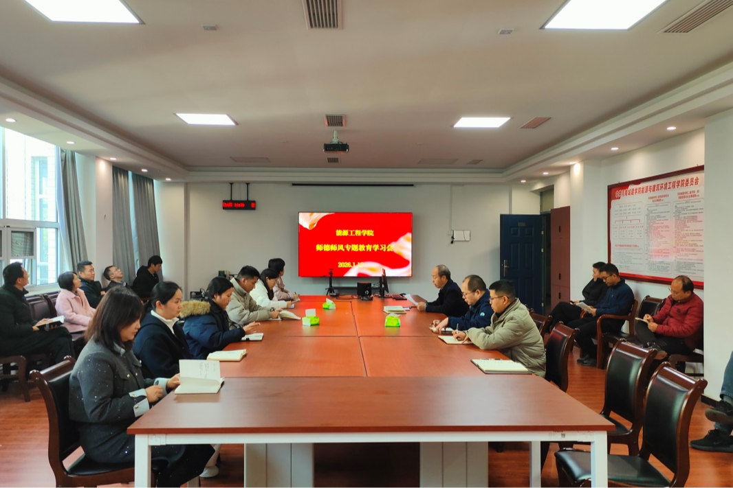 为全面加强师德师风建设,明确教师职业行为规范,1月13日下午,能源工程学院组织召开师德师风专题教育学习会,学院全体教职工参会。会议由学院党委书记赵兴涛主持。