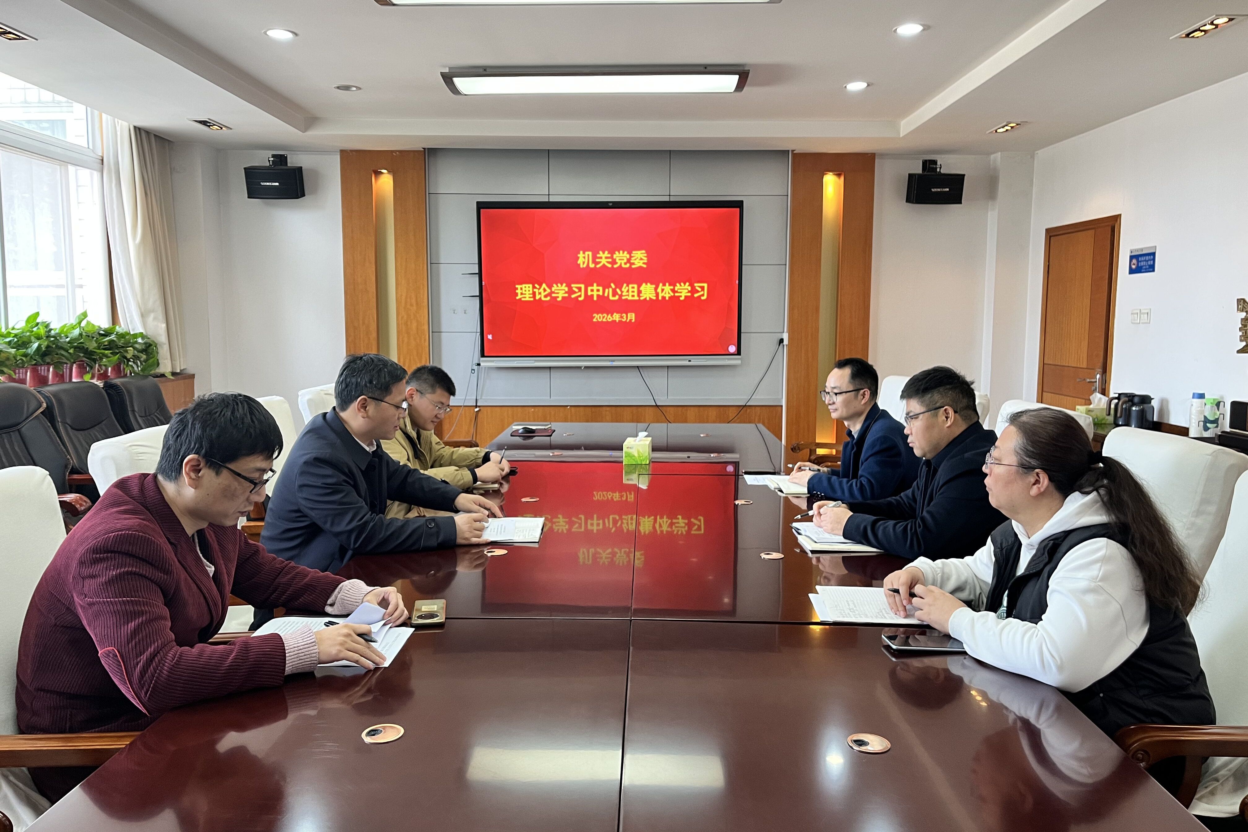 3月25日,机关党委理论学习中心组召开集体学习会议,专题学习树立和践行正确政绩观学习教育相关内容及2026年全国两会精神,机关党委理论学习中心组成员参加会议,会议由机关党委书记王世翔主持。