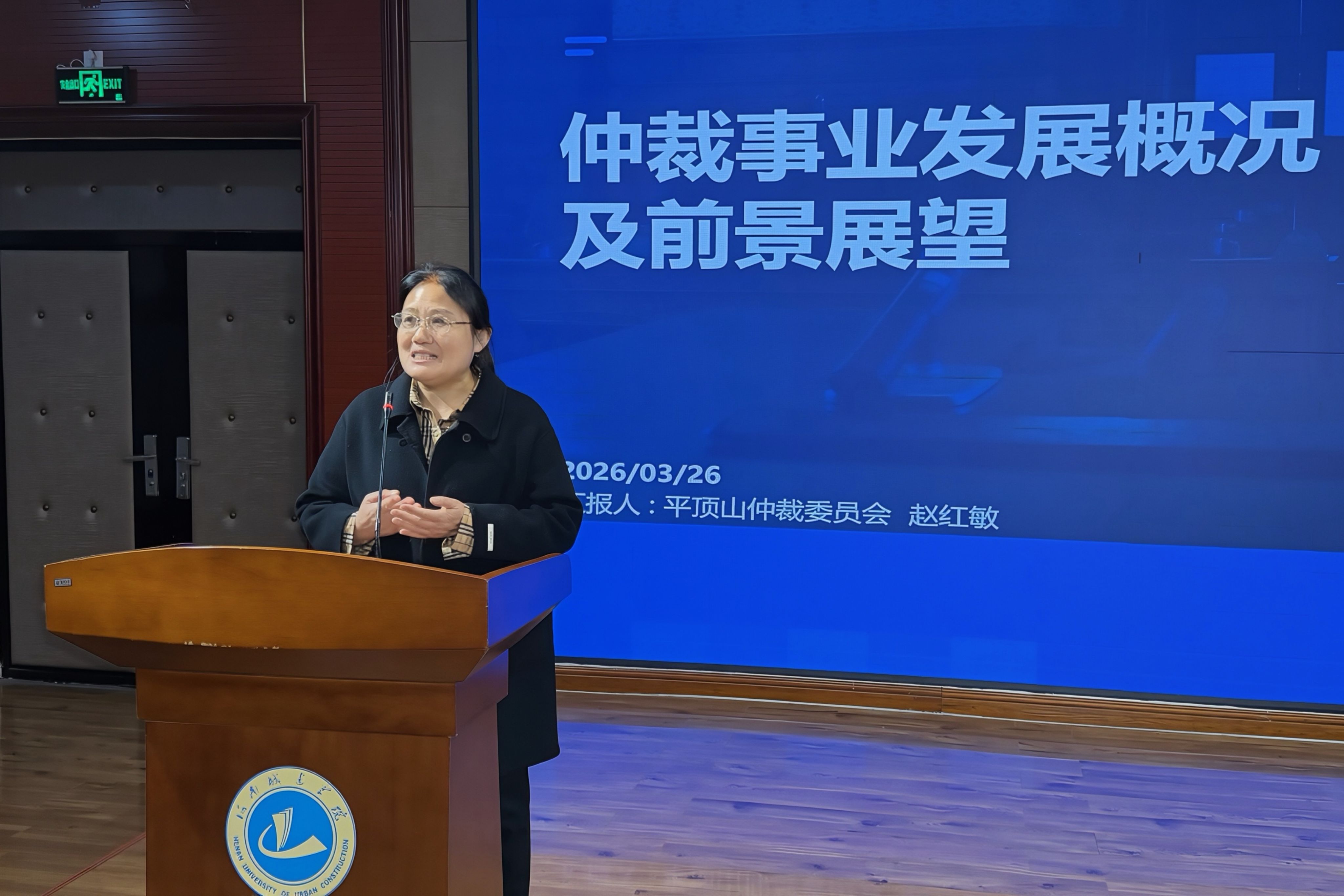 为庆祝《仲裁法》实施三十周年,深入宣传推广民商事仲裁法律制度,增强学生法治意识,3月26日上午,我校在4号楼音乐教室举办仲裁知识进校园专题报告会。平顶山仲裁案件受理中心仲裁科科长赵红敏,平顶山仲裁委员会仲裁员、我校法学院生青杰教授应邀到场,为我校学生带来专题讲座。