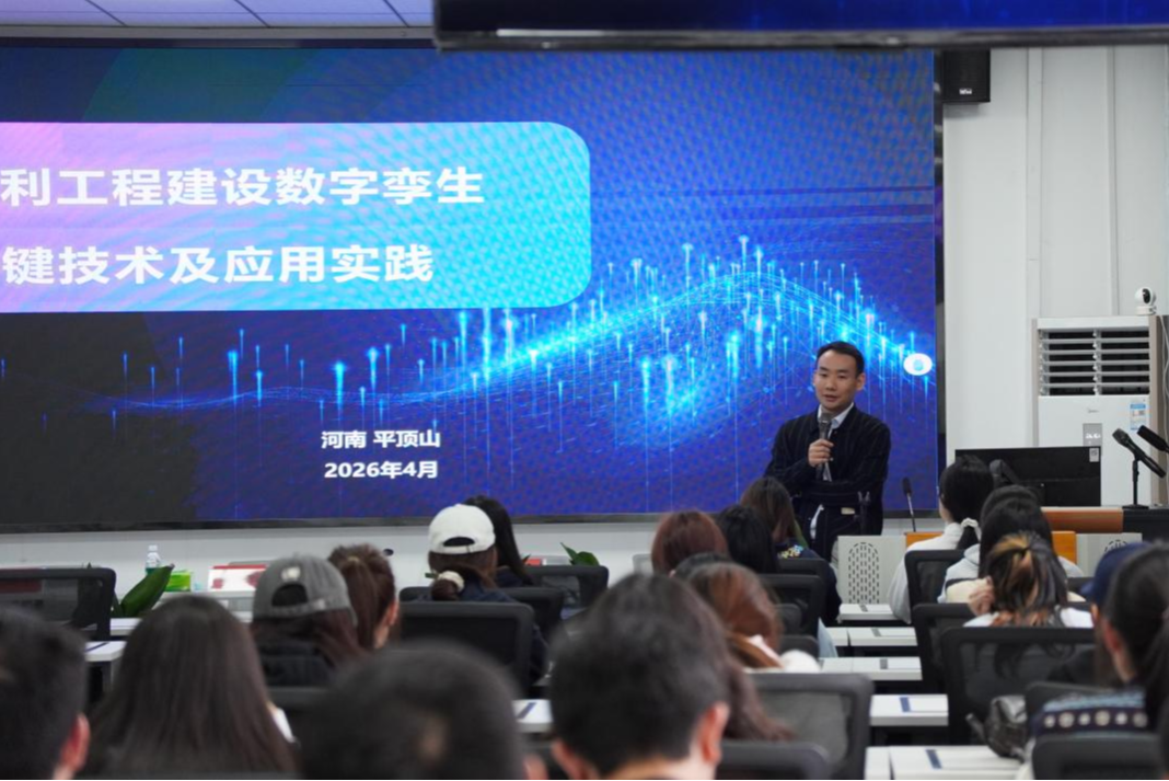 报告中,郭渊冬结合自身一线实践经历,围绕行业政策、关键技术、典型案例、个人成长四个维度展开分享。他系统解读水利工程数字化转型政策导向,深入讲解数字孪生、BIM、智能监测等核心技术在水利工程全生命周期的应用要点,结合南水北调等国家级重大工程案例,生动展现数字化技术破解工程建设难题、提升建设管理效能的实践路径,并分享个人职业成长历程,为在场学子规划学业、提升能力、对接行业需求提供务实指导,助力大家拓宽专业视野、紧跟行业前沿、增强创新与实践能力。