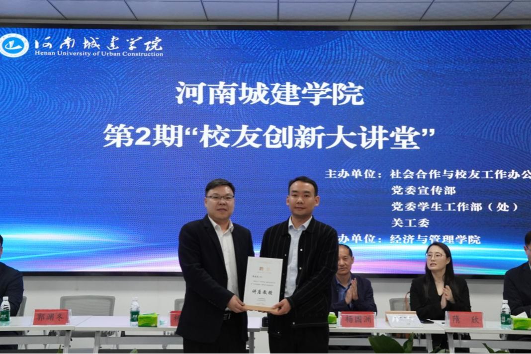 为深化产教融合、拓宽师生学术视野,助力学生精准把握数字化发展新趋势,4月2日,由社会合作与校友工作办公室、党委宣传部、党委学生工作部(处)、关工委主办,经济与管理学院承办的2026年第二期校友创新大讲堂在8号教学楼A208举行。社会合作与校友工作办公室副主任杨毅、学生处副处长杨国洲、经济与管理学院副院长殷许鹏及学生代表100余人参加此次活动。本次大讲堂活动特邀请我院优秀校友、云河(河南)信息科技有限公司郭渊冬做报告。活动由经济与管理学院党委副书记李思源主持。