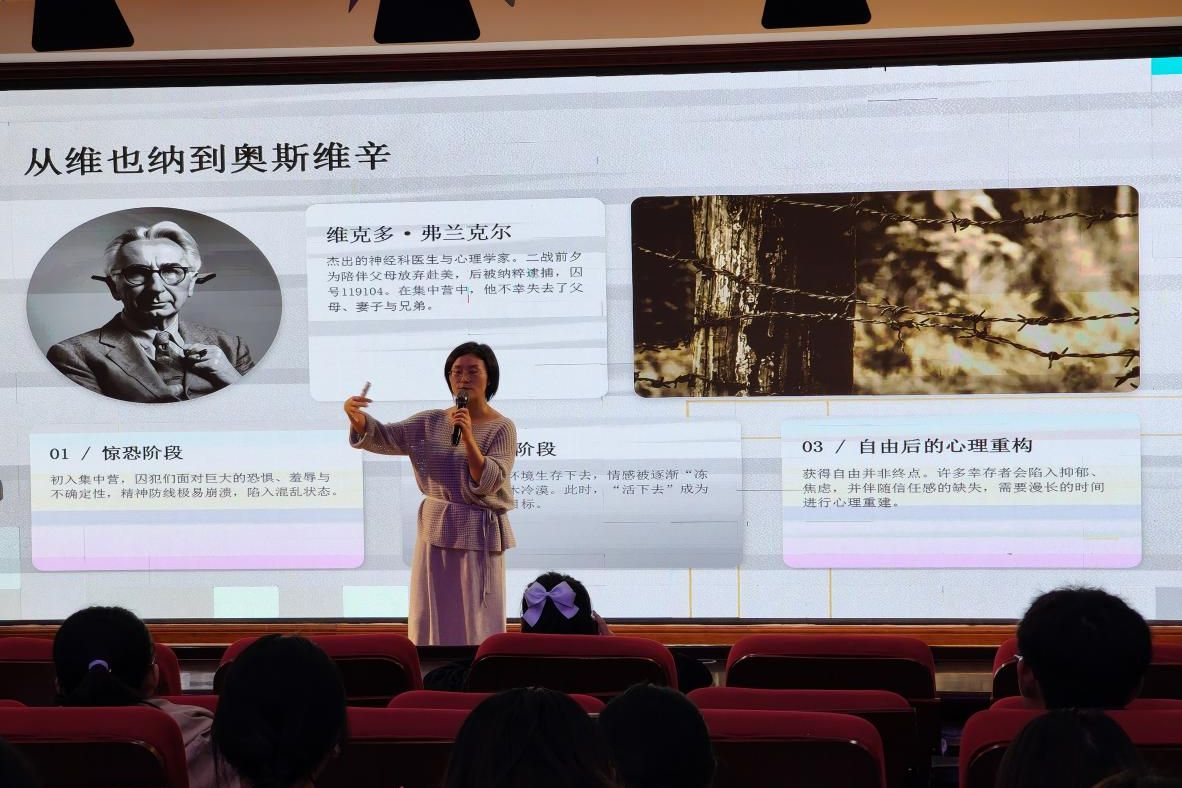 张冠琼老师以作者维克多・弗兰克尔在集中营的亲身经历为线索,围绕苦难境遇下对生命意义的求索展开分享,深刻阐释了“苦难、意义、爱与责任”的丰富内涵。她讲到,人所拥有的一切皆可被剥夺,但始终拥有选择自身态度与行事方式的终极自由。苦难本身无法避免,直面困境、在磨砺中沉淀成长,便是苦难独有的价值。她鼓励大家从深耕学业、心怀热爱、感知美好、直面困境的勇气之中,探寻属于自己的生命意义,以从容积极的心态直面成长路上的风雨与挑战。
