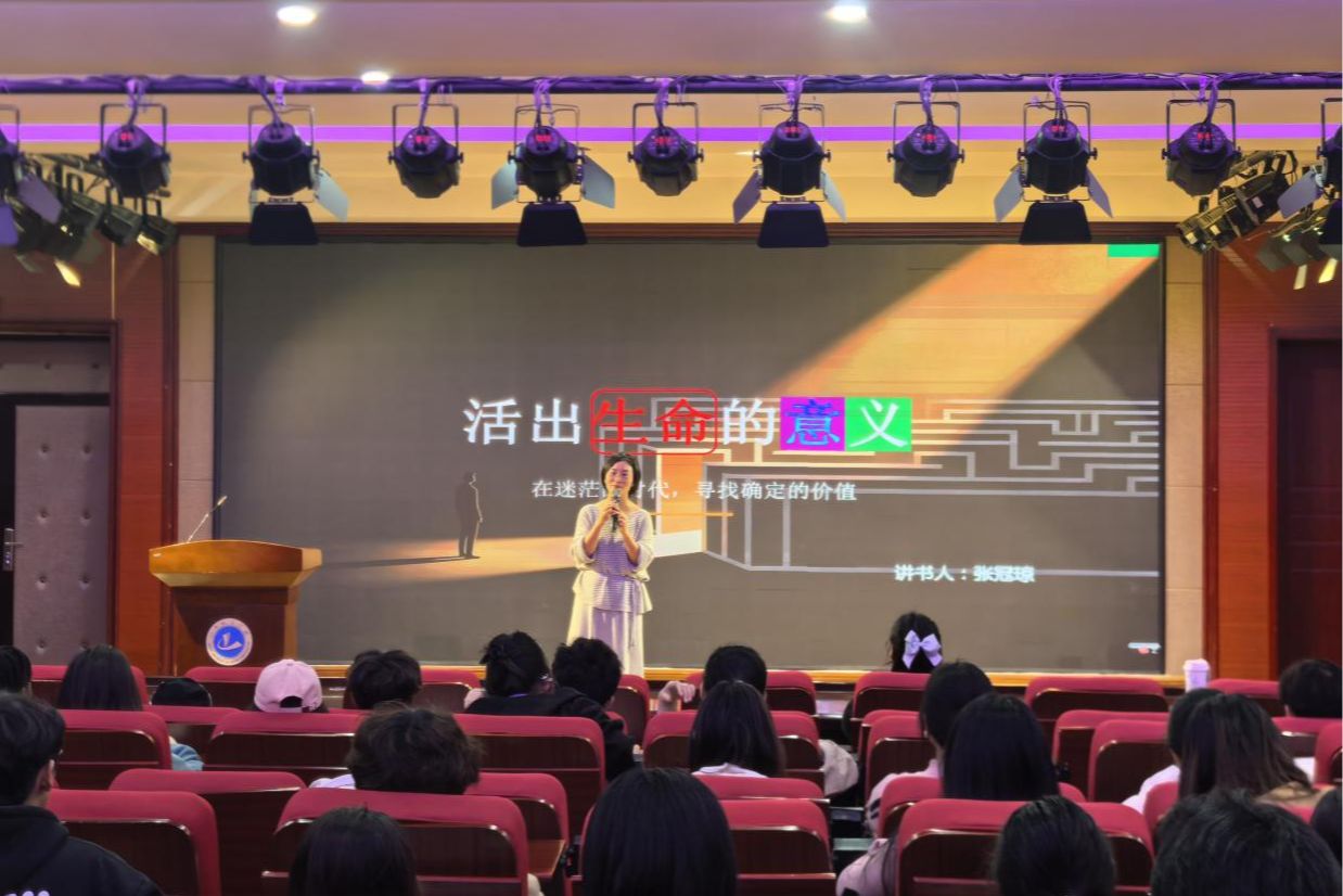 在第31个“世界读书日”到来之际,为深入推进全民阅读,建设书香校园,引导青年学生正视挫折、涵养心灵、感悟生命价值,4月21日晚,我校图书馆“共读一书 共绘智慧画卷”名师悦读会在4号楼音乐教室顺利举办。本次活动特邀管理学院张冠琼老师主讲,围绕心理学经典著作《活出生命的意义》展开深度阅读分享,百余位师生共聚一堂,在书香中体悟成长、启迪心灵。
